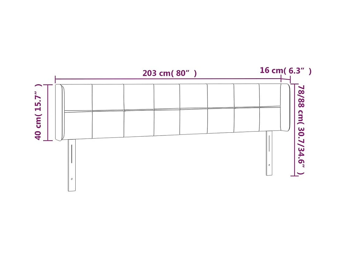 Hoofdbord met randen 203x23x78/88 cm stof zwart