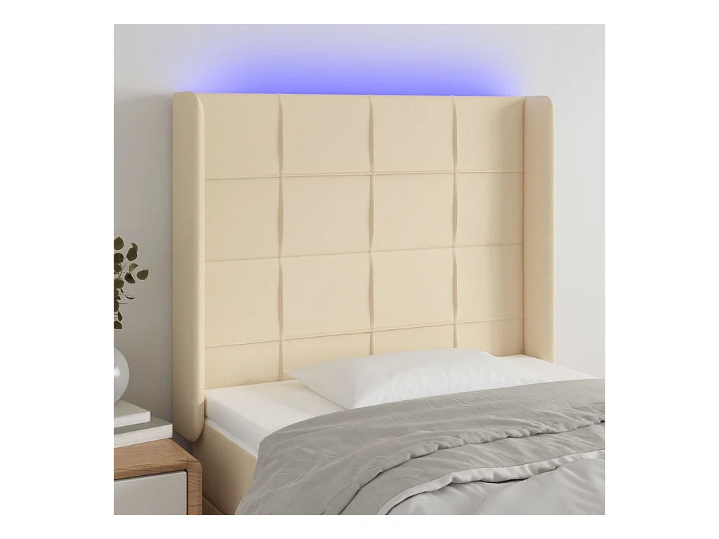 Hoofdbord LED 103x16x118/128 cm stof crèmekleurig