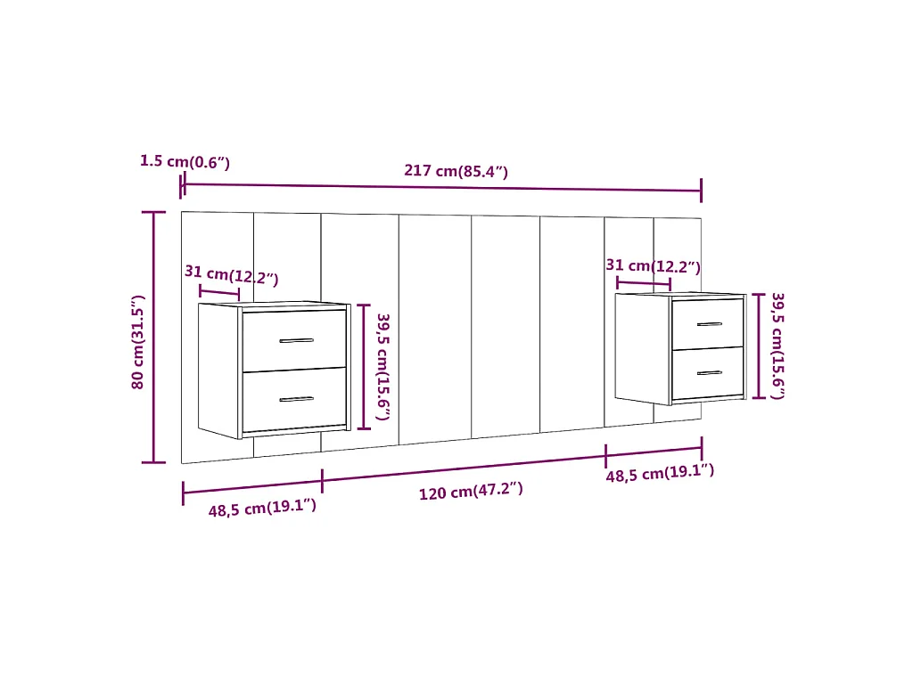 Hoofdbord met kastjes bewerkt hout gerookt eikenkleurig
