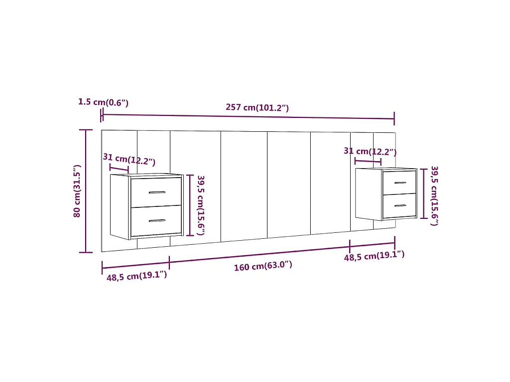 Hoofdbord met kastjes bewerkt hout sonoma eikenkleurig