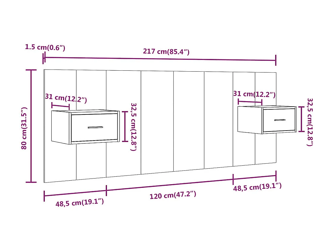 Hoofdbord met kastjes bewerkt hout wit