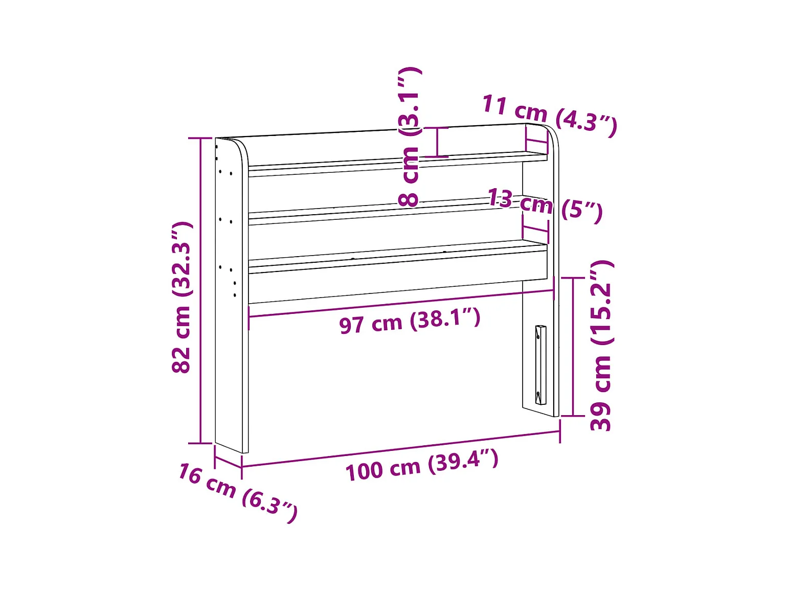 Hoofdbord met planken wit 90 cm massief grenenhout