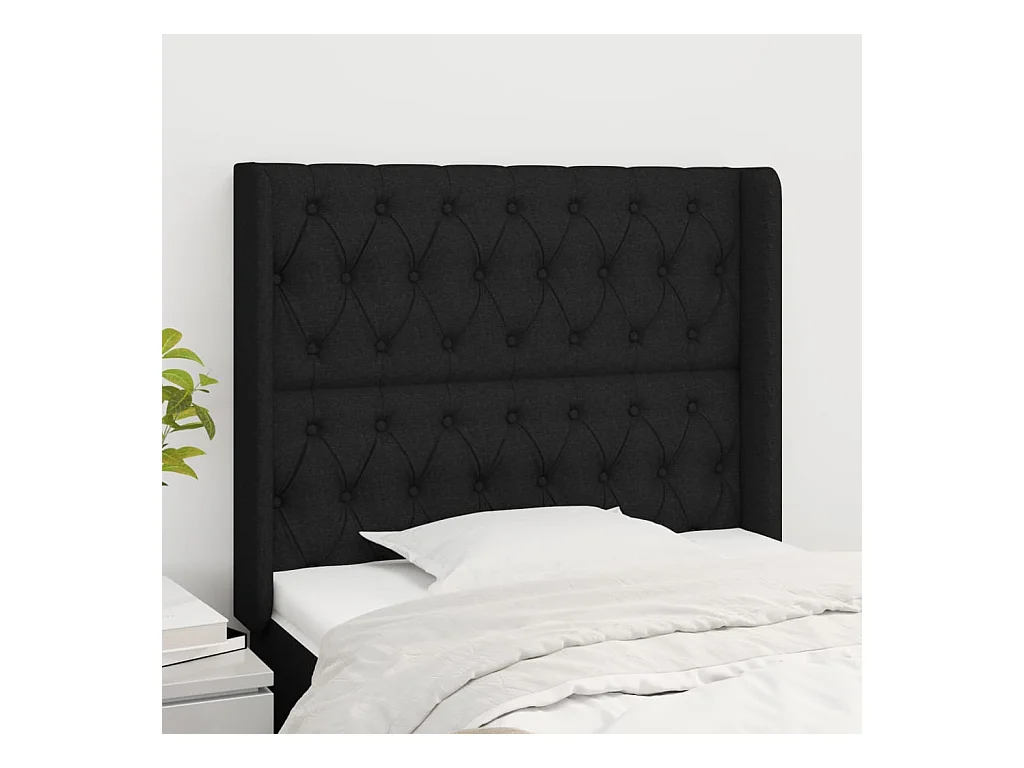 Hoofdbord met randen 103x16x118/128 cm stof zwart