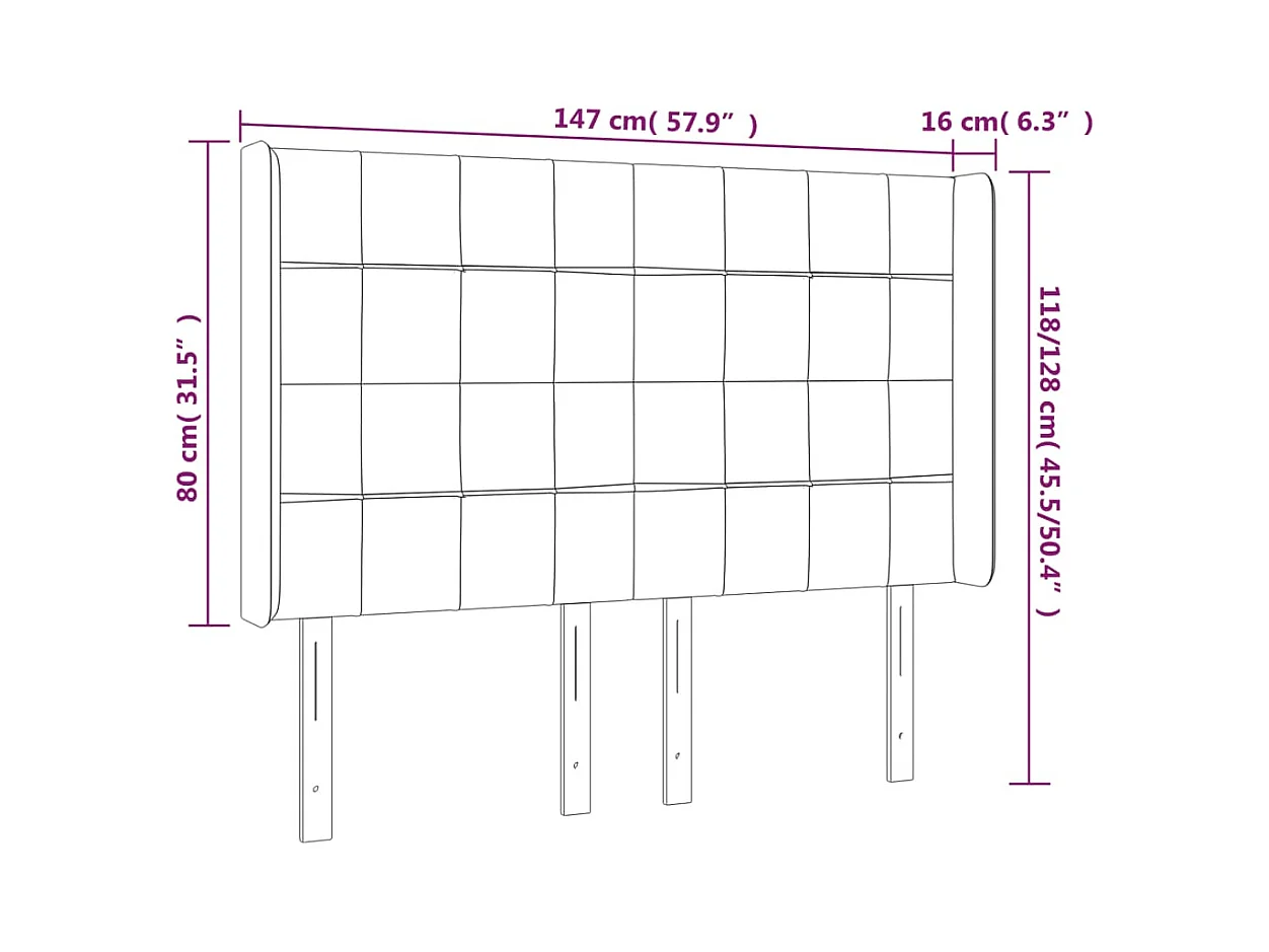 Hoofdbord met randen 147x16x118/128 cm stof taupe