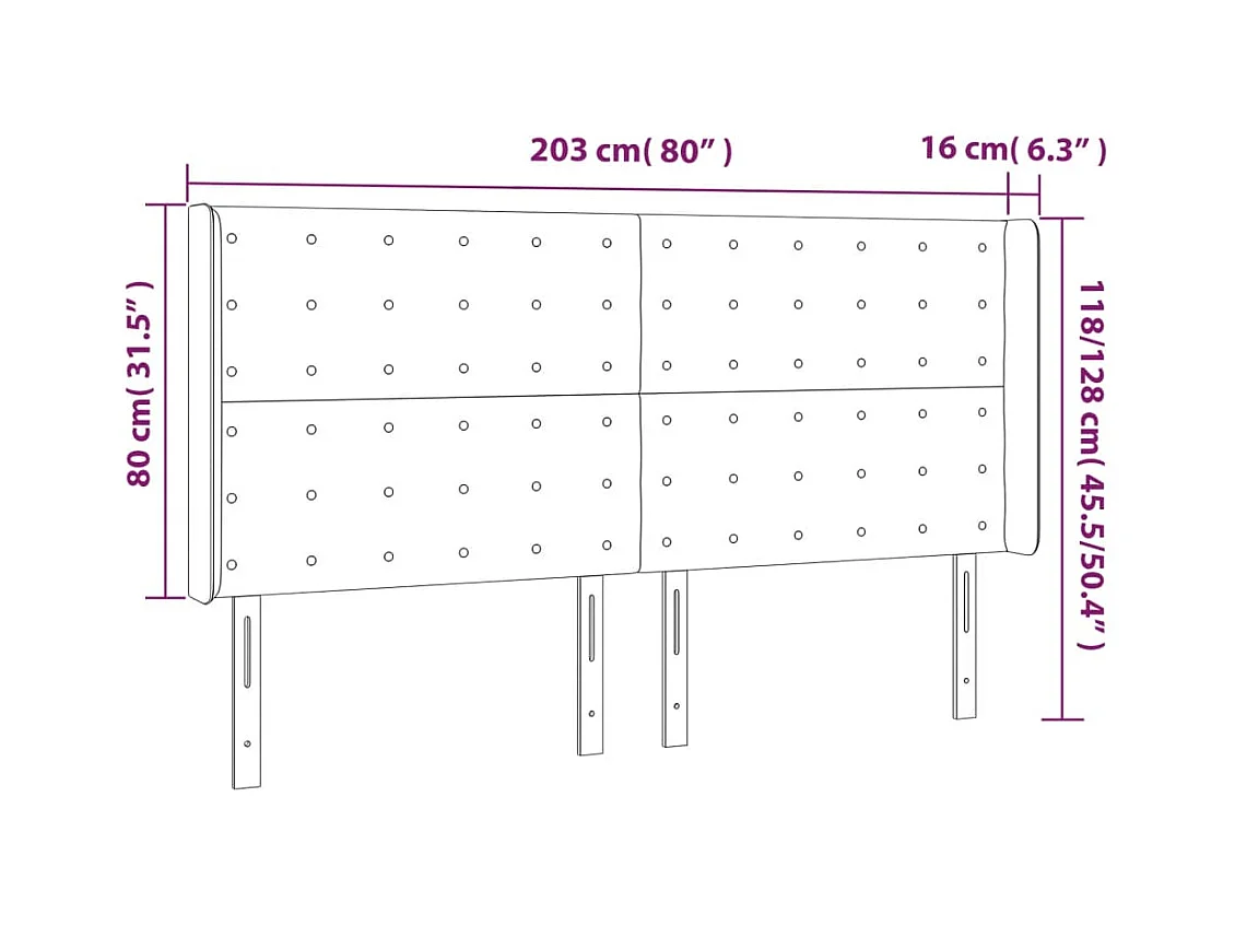 Hoofdbord met randen 203x16x118/128cm kunstleer cappuccinokleur