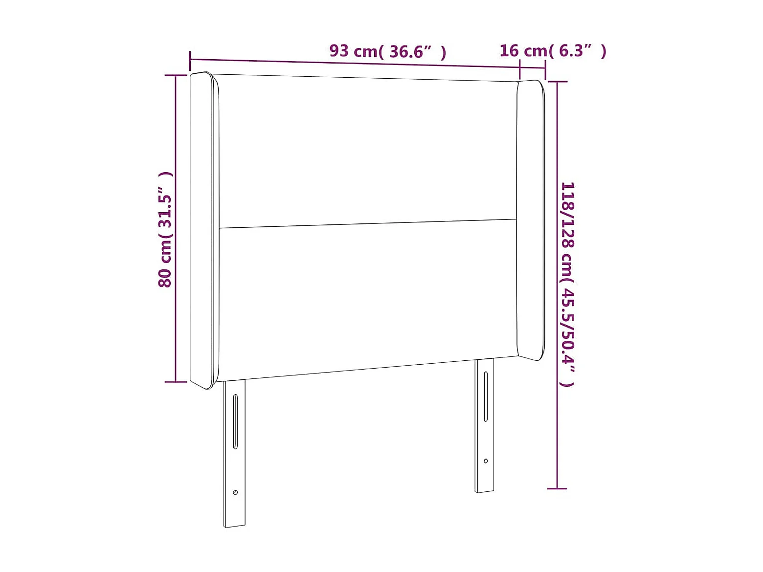 Hoofdbord met randen 93x16x118/128 cm stof lichtgrijs