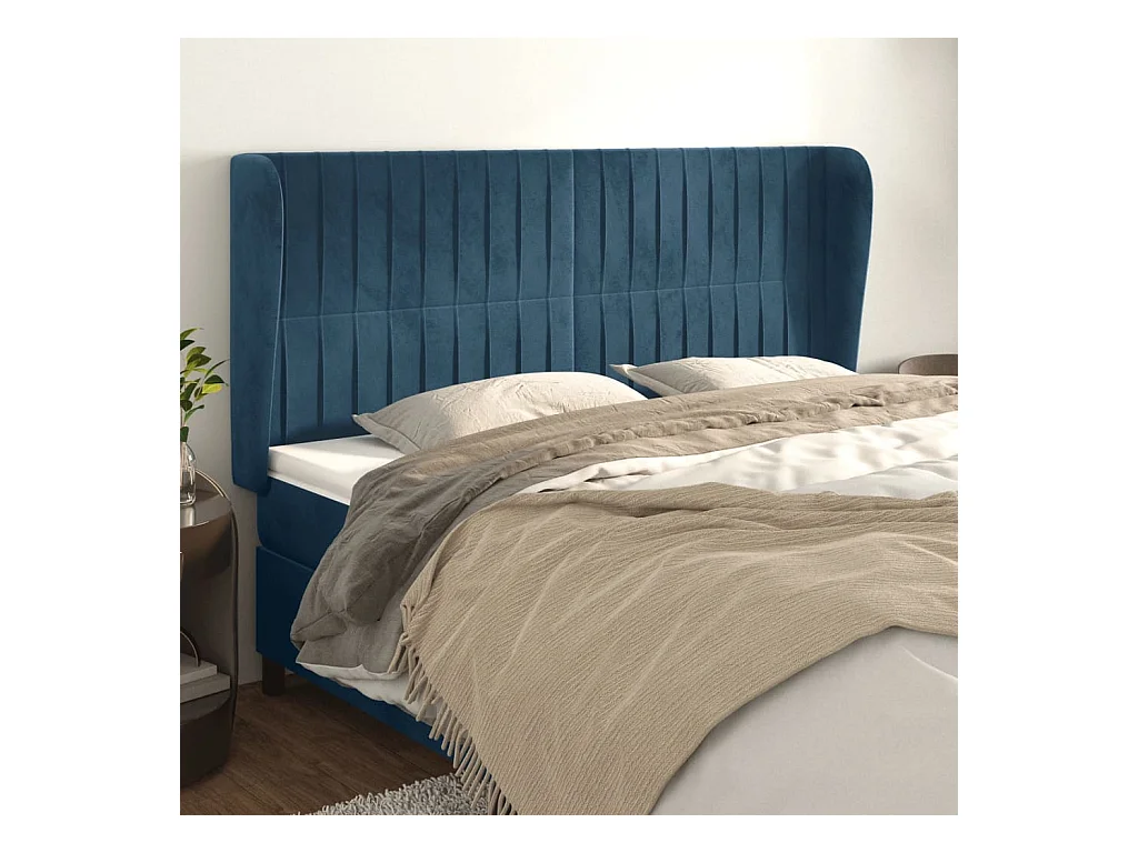 Hoofdbord met vleugels Donkerblauw 183x23x118/128 cm Fluweel