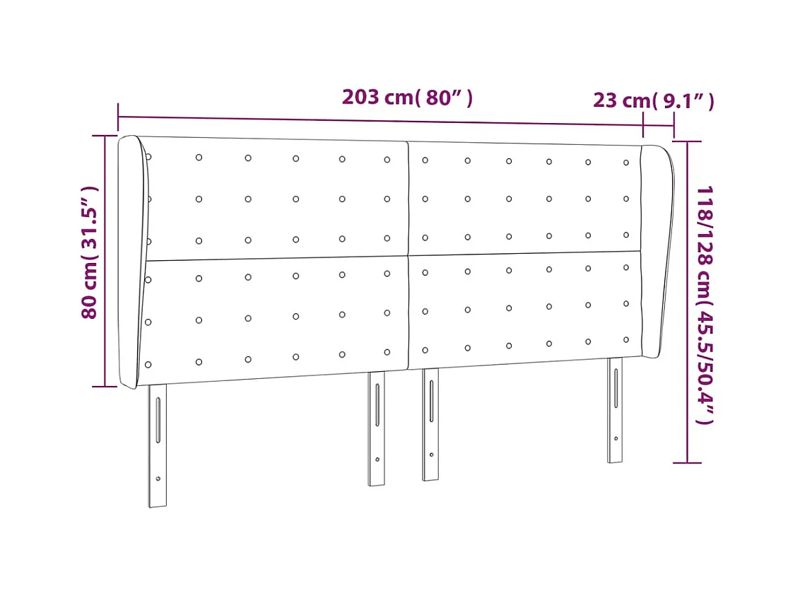Hoofdbord met vleugels Donkergrijs 203x23x118/128 cm Fluweel