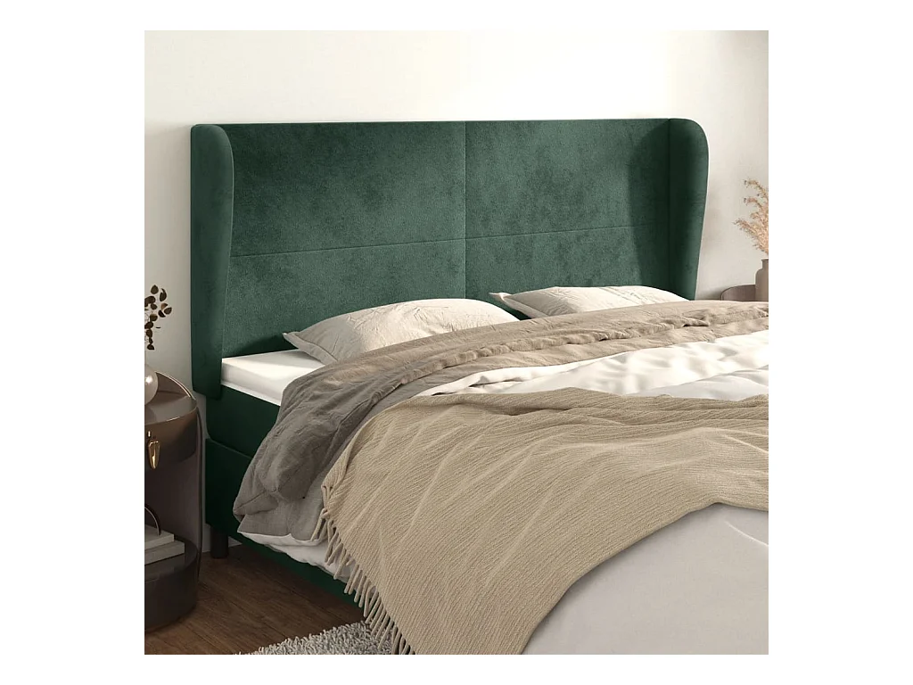 Hoofdbord met vleugels Donkergroen 147x23x118/128 cm Fluweel