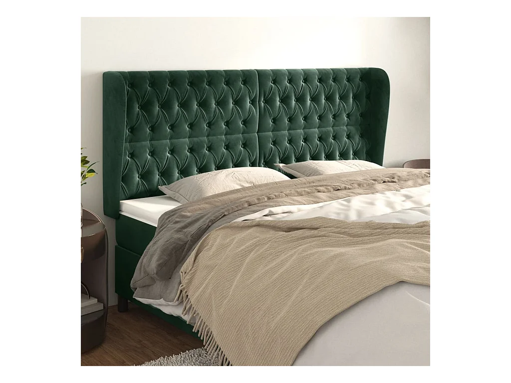 Hoofdbord met vleugels Donkergroen 183x23x118/128 cm Fluweel