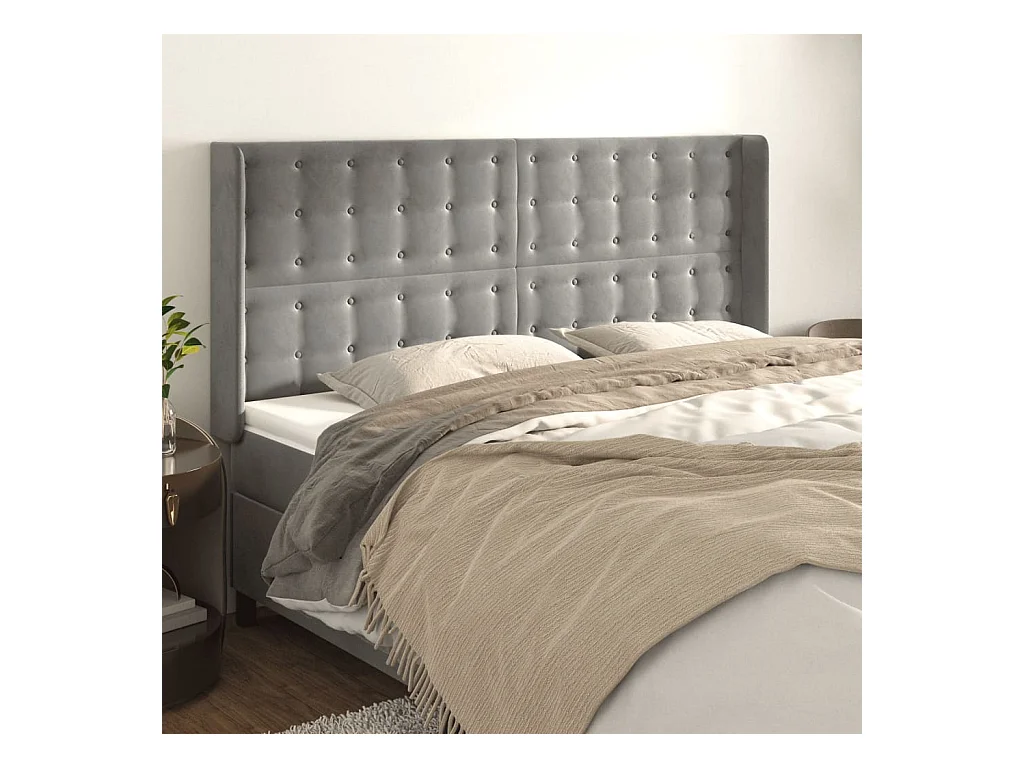 Hoofdbord met vleugels Lichtgrijs 183x16x118/128 cm Fluweel