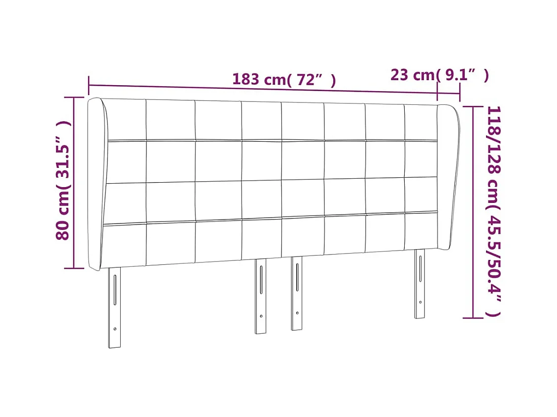 Hoofdbord met vleugels Donkergrijs 183x23x118/128 cm Fluweel