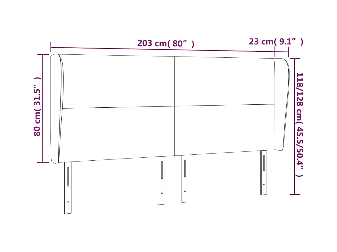 Hoofdbord met vleugels Rose 203x23x118/128 cm Fluweel