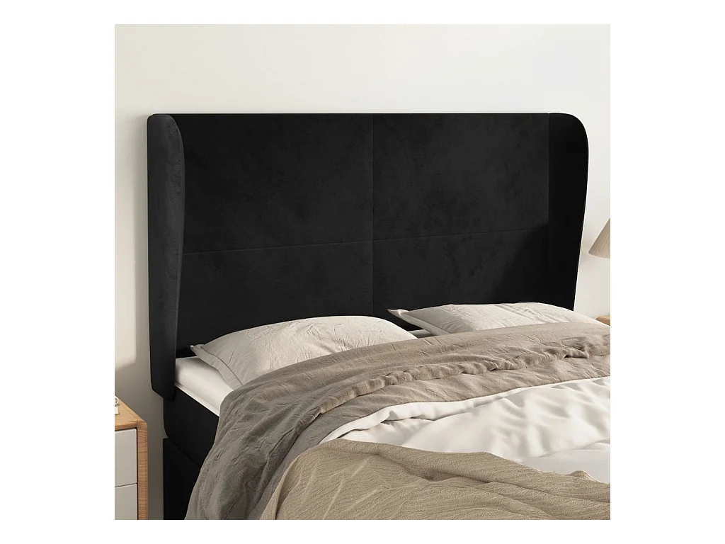 Hoofdbord met vleugels Zwart 147x23x118/128 cm Fluweel