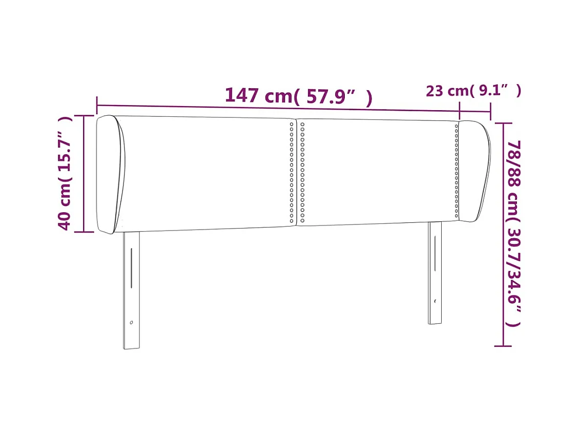 Hoofdbord met vleugels Zwart 147x23x78/88 cm Stof