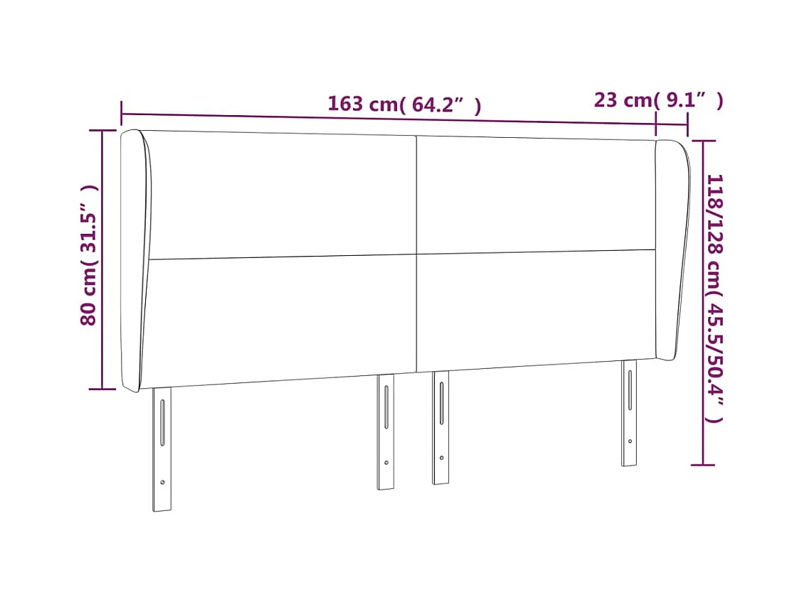 Hoofdbord met vleugels Zwart 163x23x118/128 cm Kunstleer