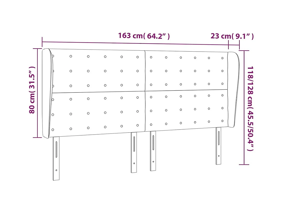 Hoofdbord met vleugels Zwart 163x23x118/128 cm Kunstleer