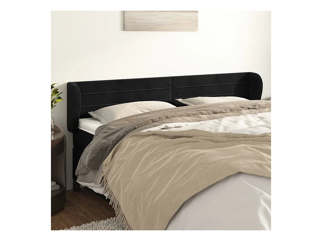 Hoofdbord met vleugels Zwart 163x23x78/88 cm Fluweel