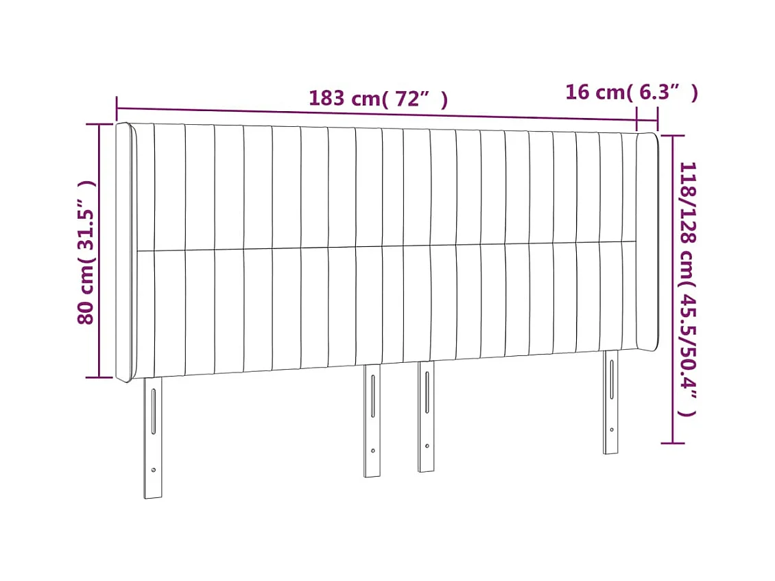 Hoofdbord met vleugels Zwart 183x16x118/128 cm Kunstleer