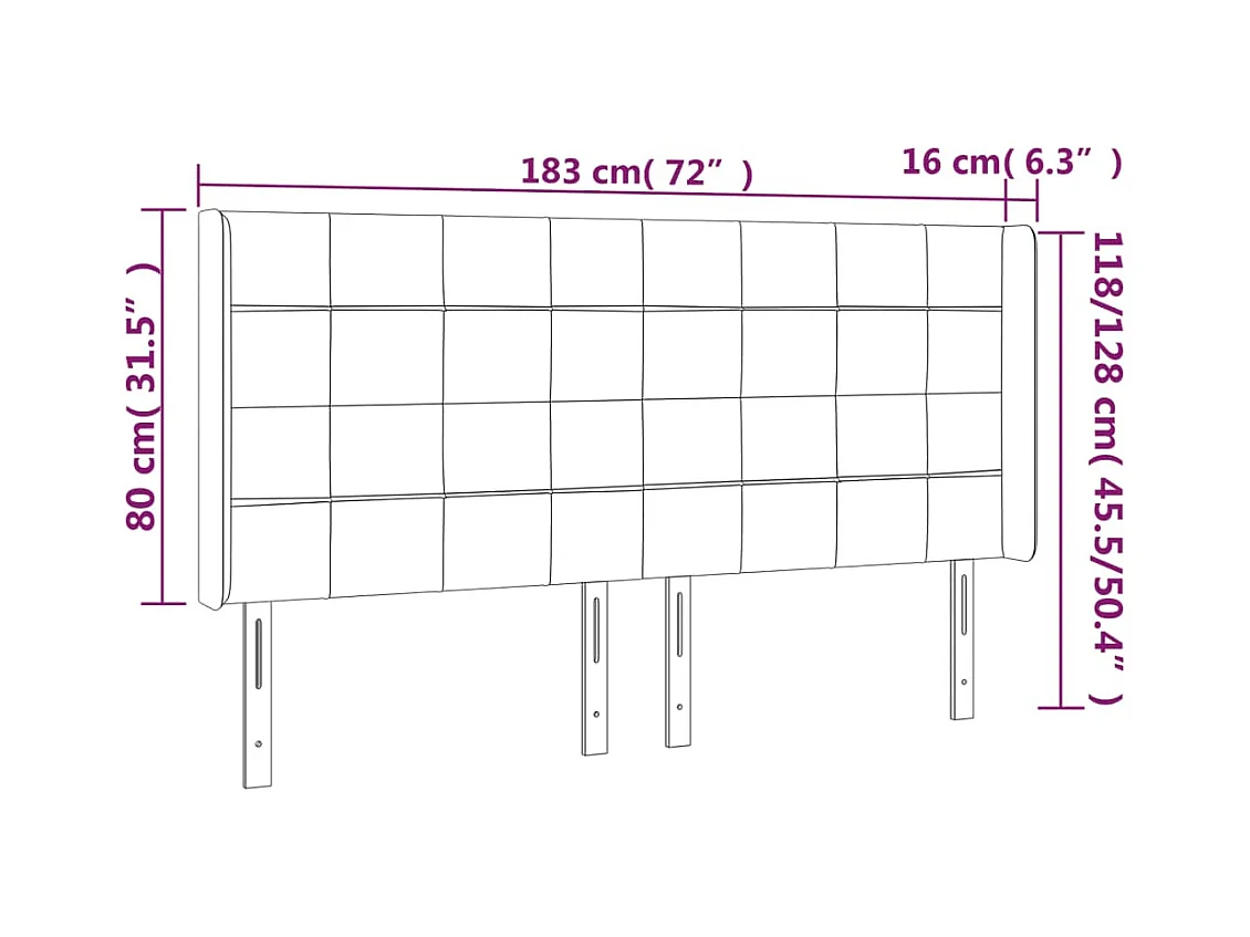 Hoofdbord met vleugels Zwart 183x16x118/128 cm Kunstleer