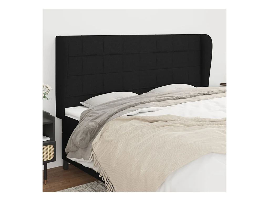 Hoofdbord met vleugels Zwart 183x23x118/128 cm Stof