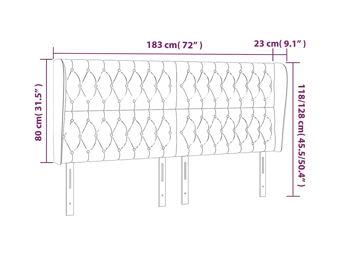 Hoofdbord met vleugels Zwart 183x23x118/128 cm Kunstleer