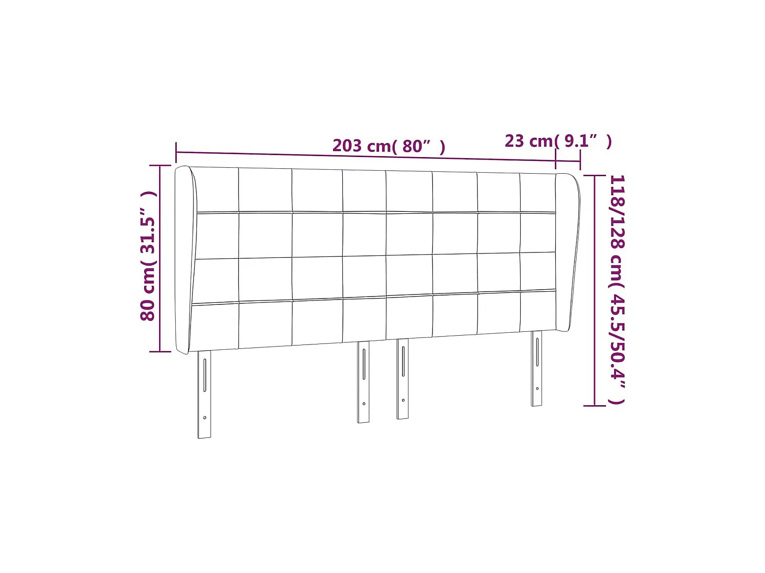 Hoofdbord met vleugels Zwart 203x23x118/128 cm Kunstleer