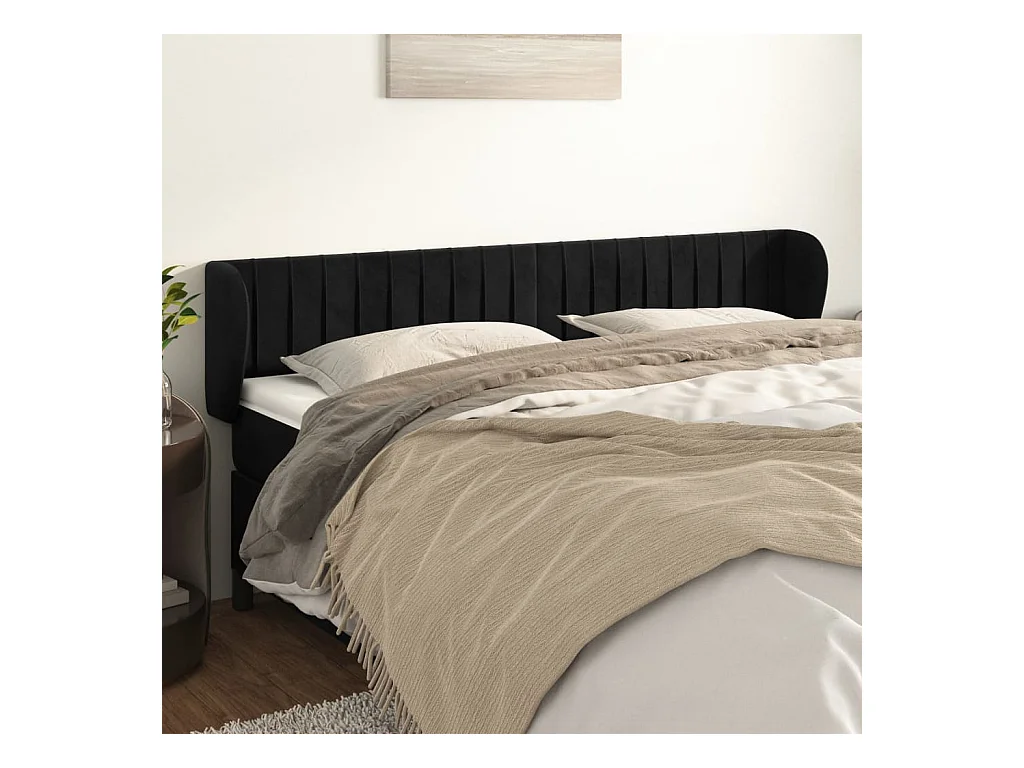Hoofdbord met vleugels Zwart 203x23x78/88 cm Fluweel