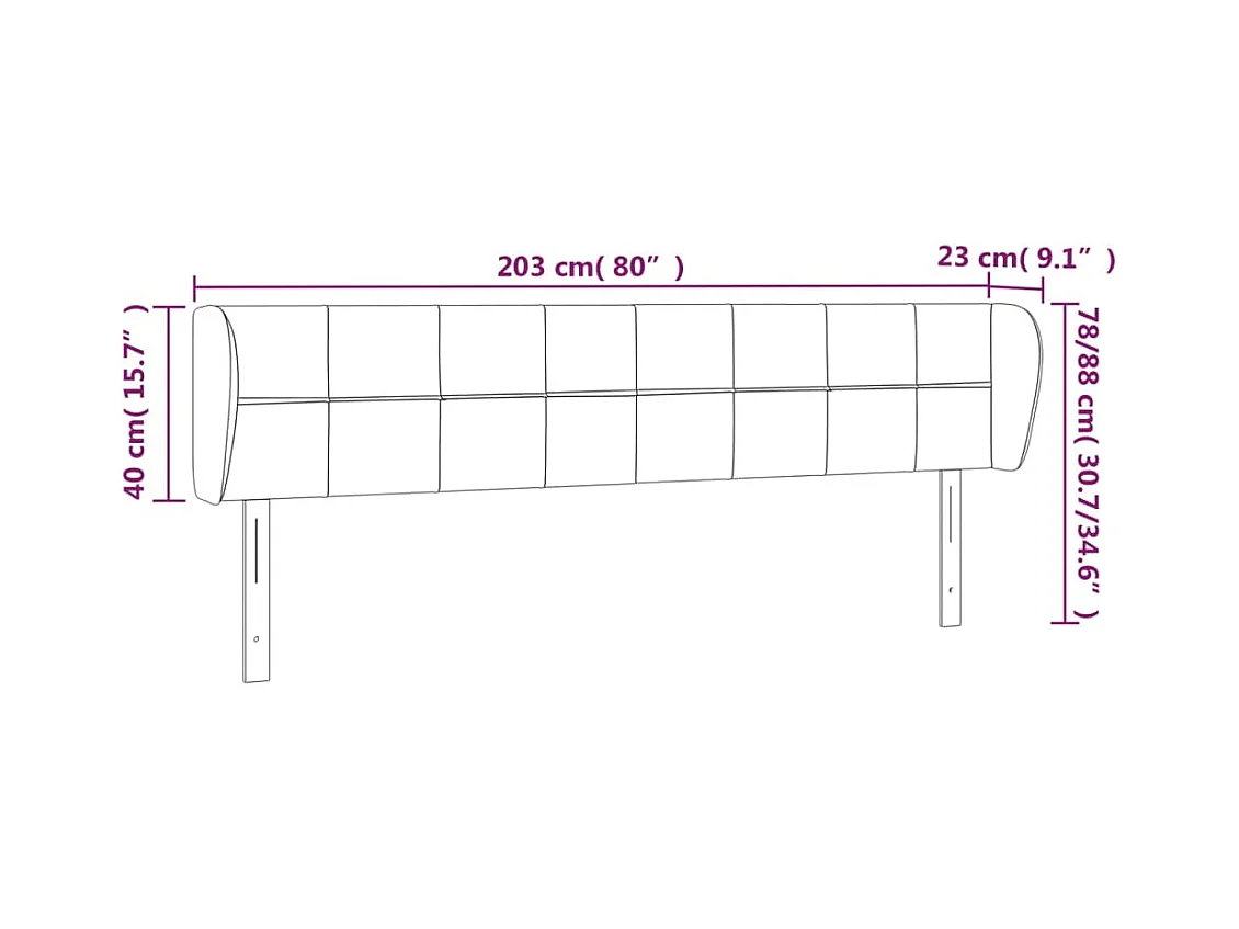 Hoofdbord met vleugels Zwart 203x23x78/88 cm Stof