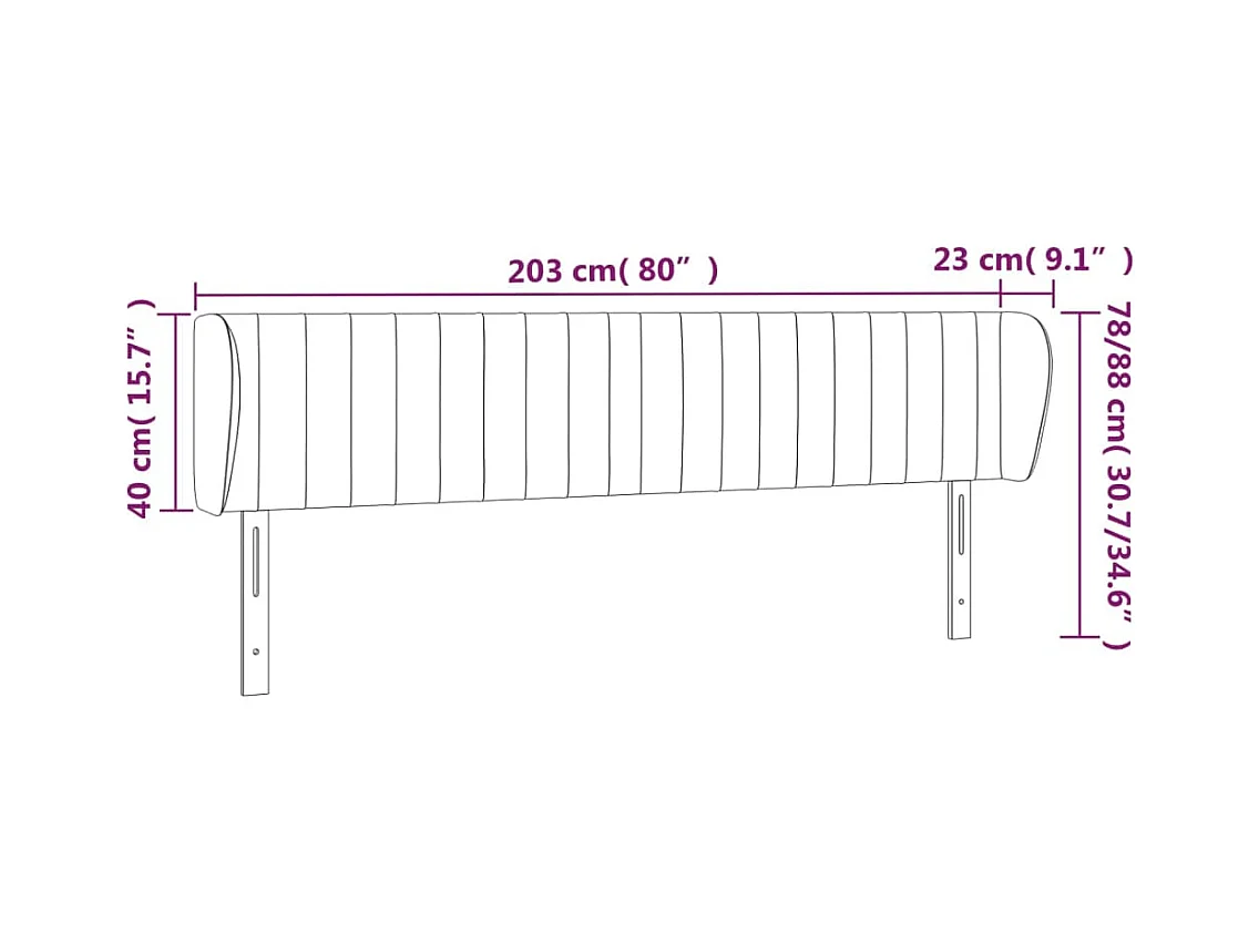 Hoofdbord met vleugels Zwart 203x23x78/88 cm Stof
