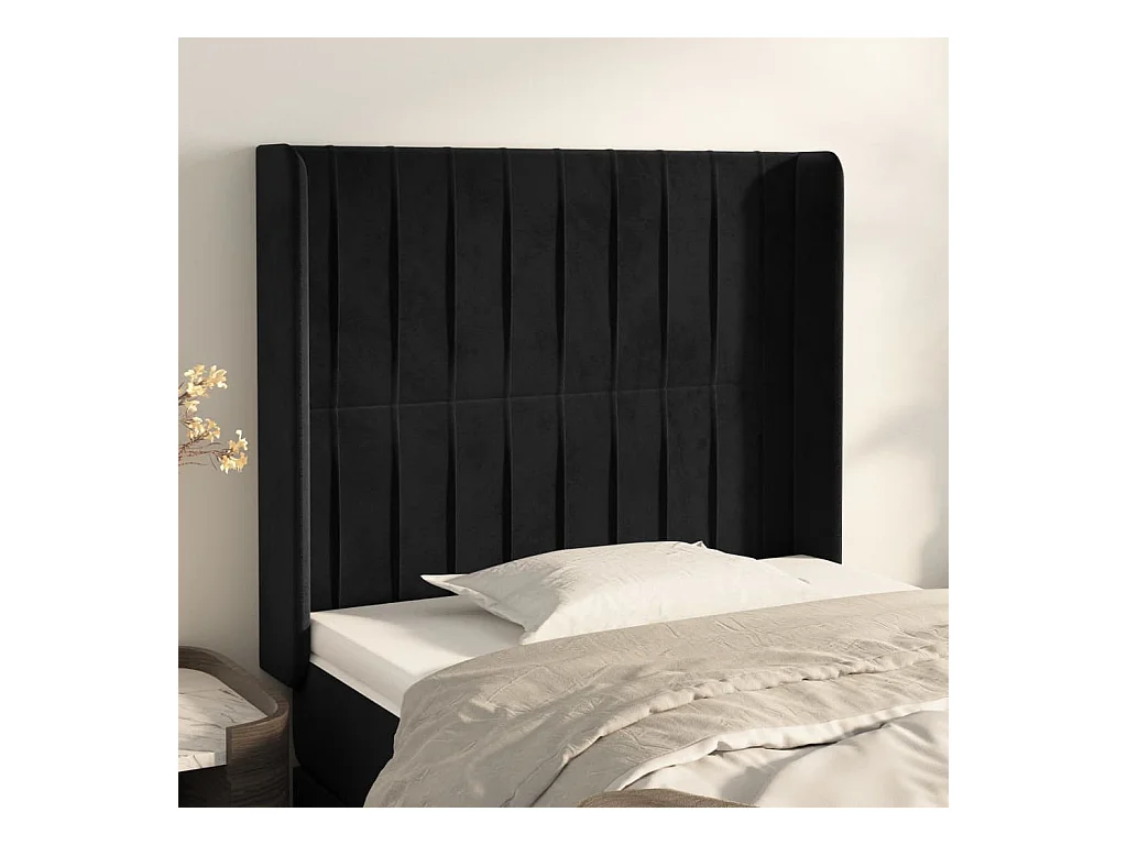 Hoofdbord met vleugels Zwart 83x16x118/128 cm Fluweel