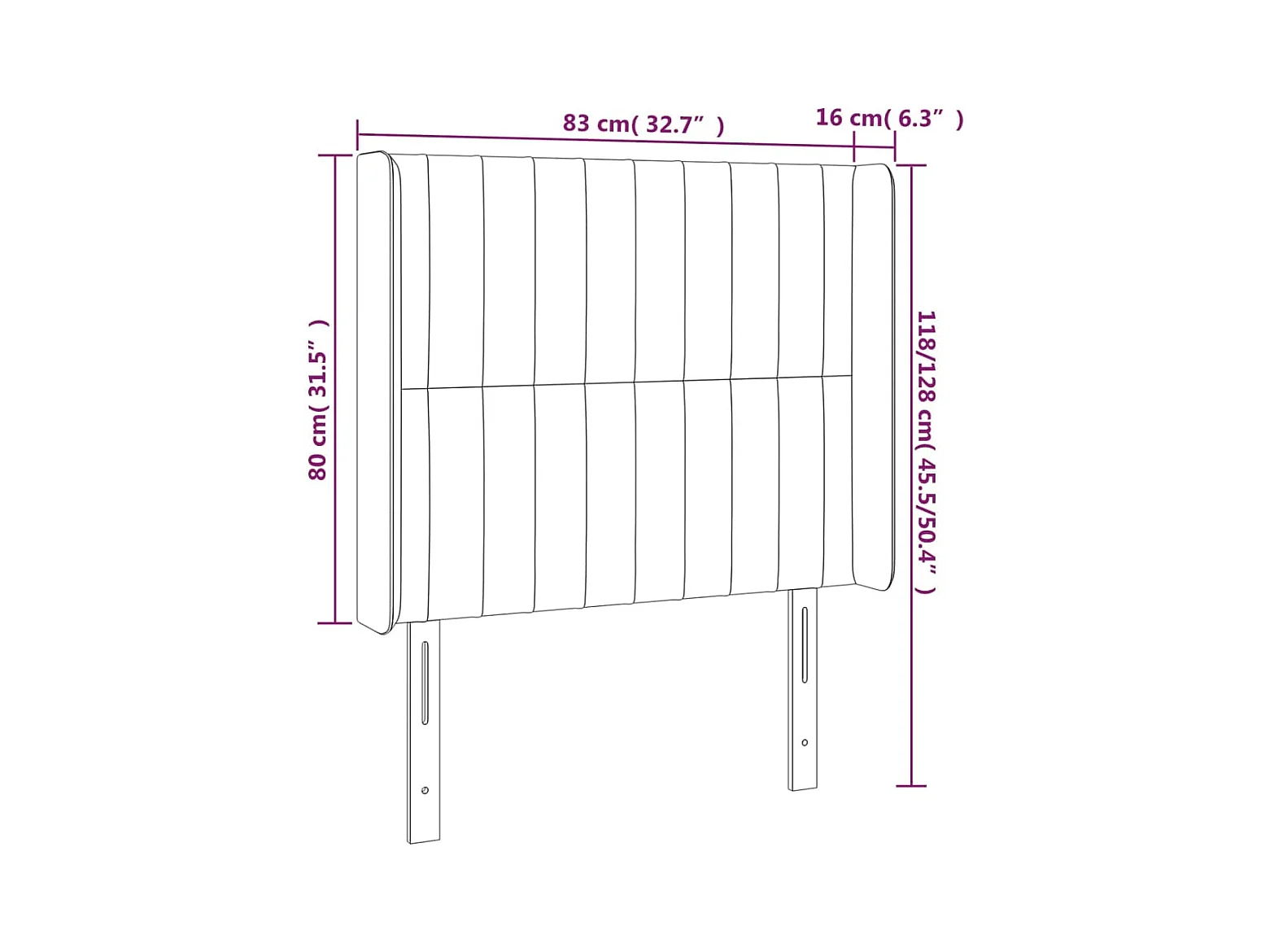 Hoofdbord met vleugels Zwart 83x16x118/128 cm Stof