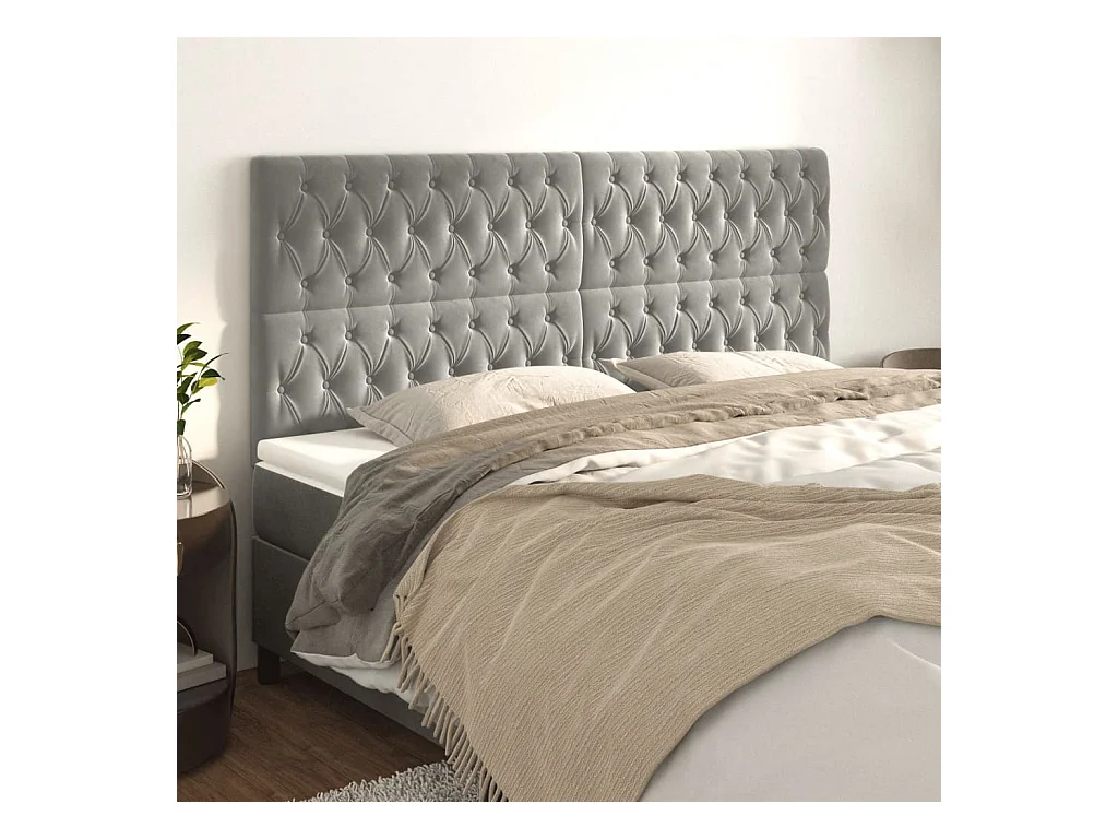 Hoofdborden 4 stuks Lichtgrijs 90x7x78/88 cm Fluweel
