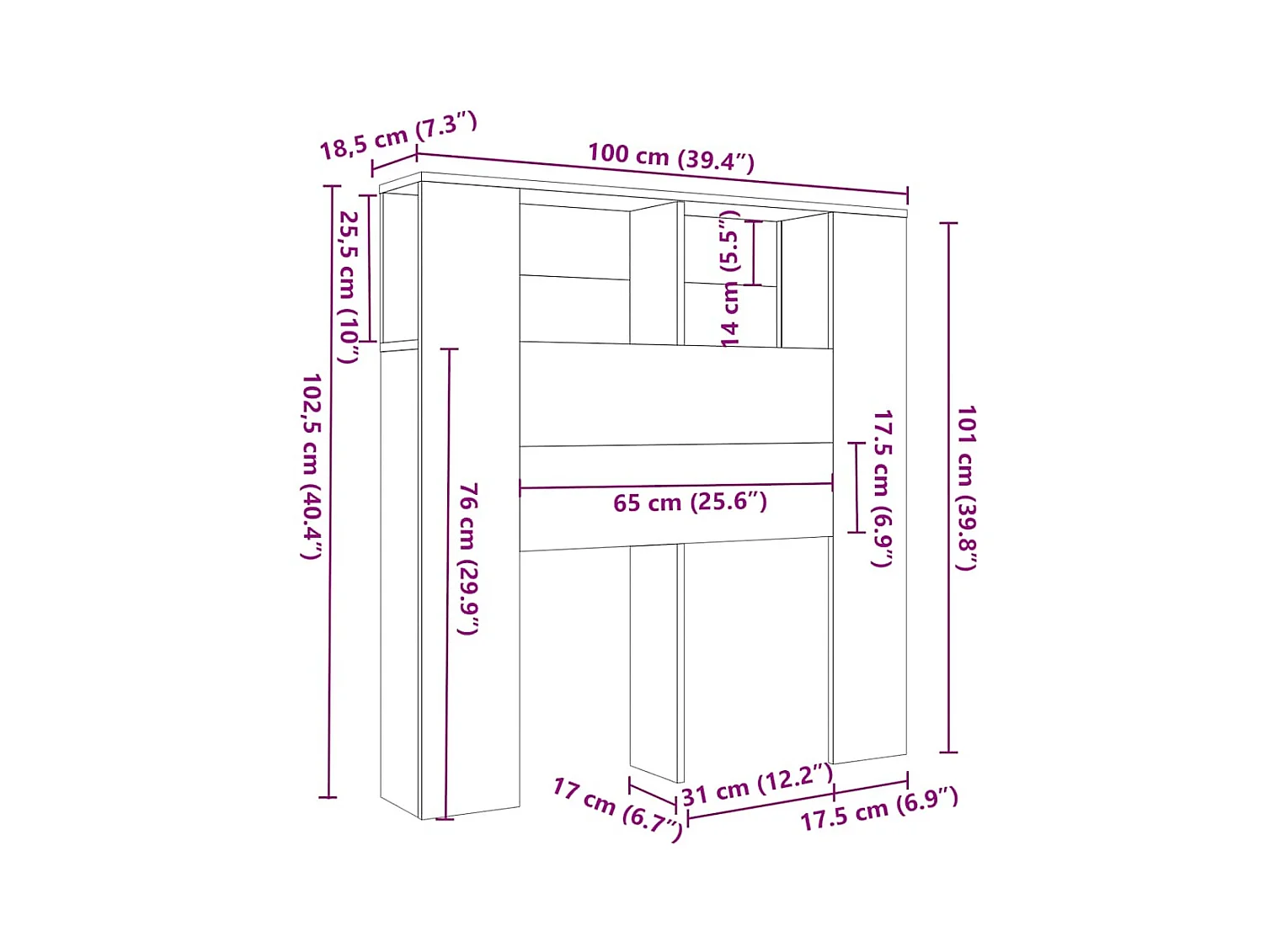 Hoofdbordkast 100x18,5x102,5 cm hoogglans wit