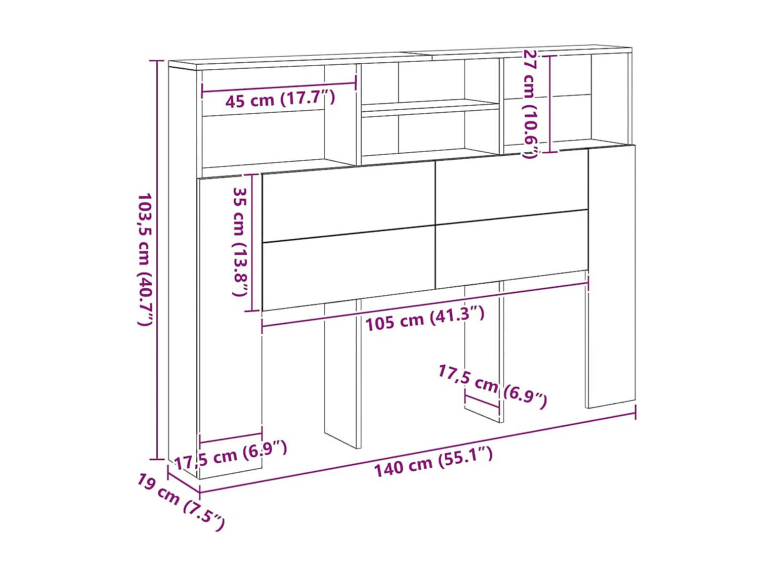 Hoofdeinde en brugkast met opbergruimte