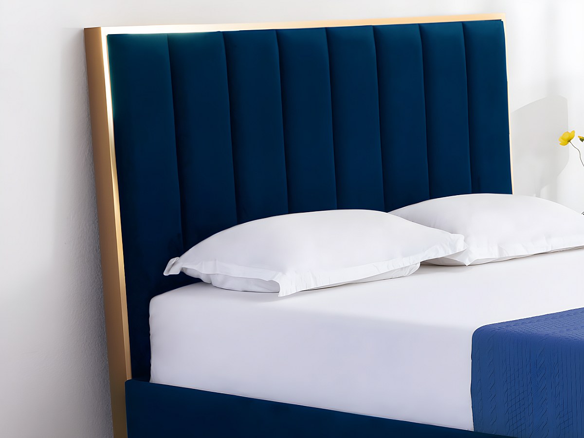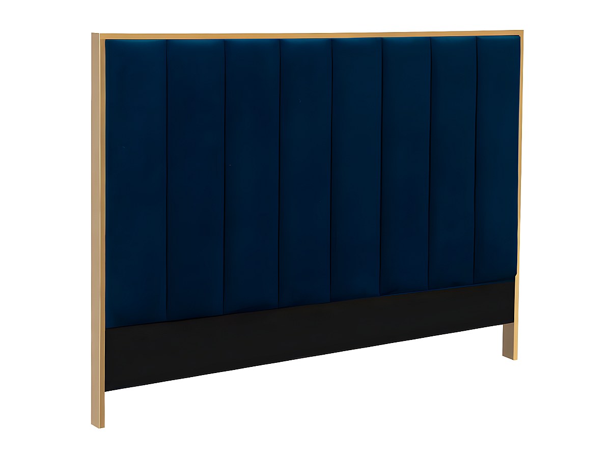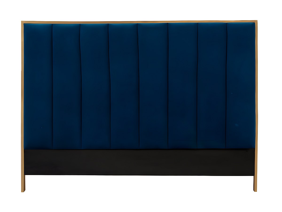 Hoofdeinde CLARISSE met verticale stiksels - 160 cm - Fluweel - Koningblauw en goudkleurig