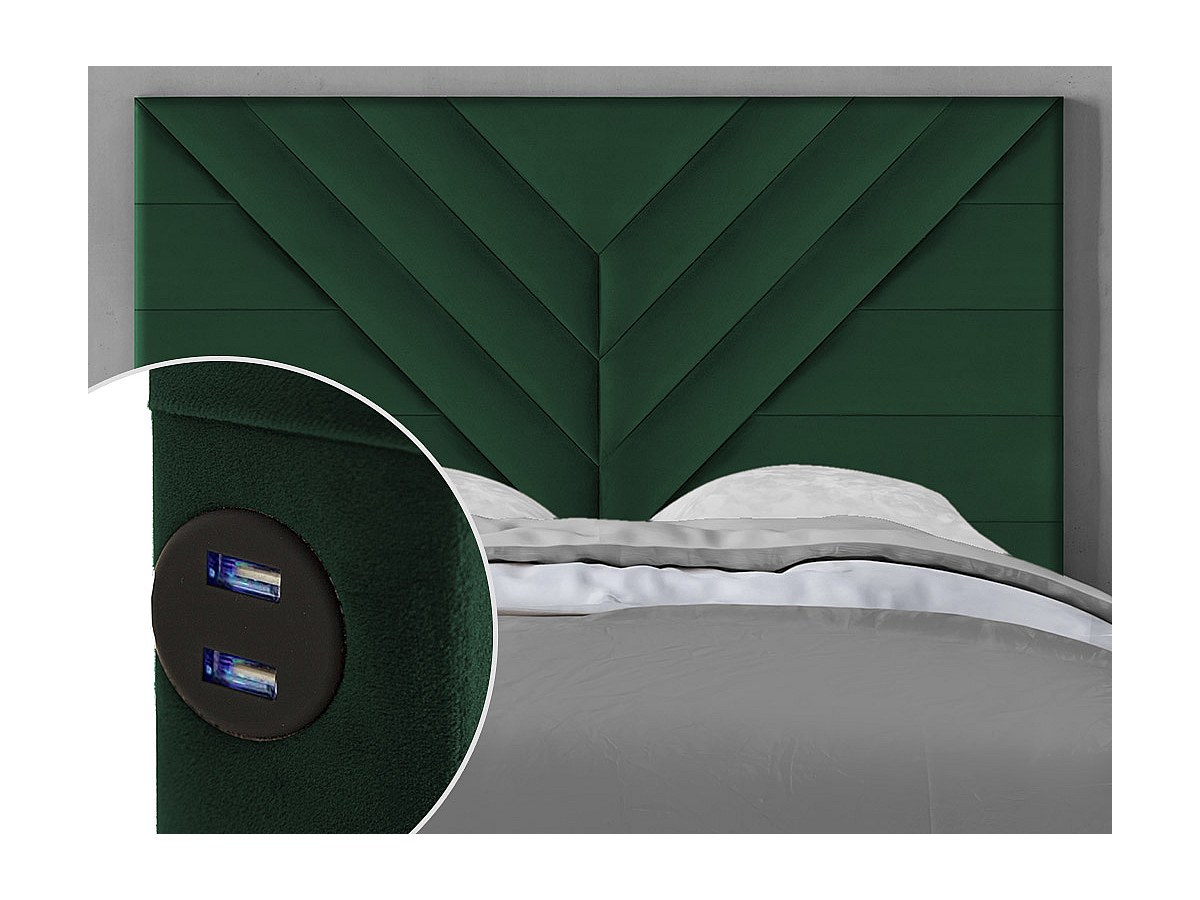 Hoofdeinde HOLDA - 160 cm - met USB-ingang - Fluweel - Groen