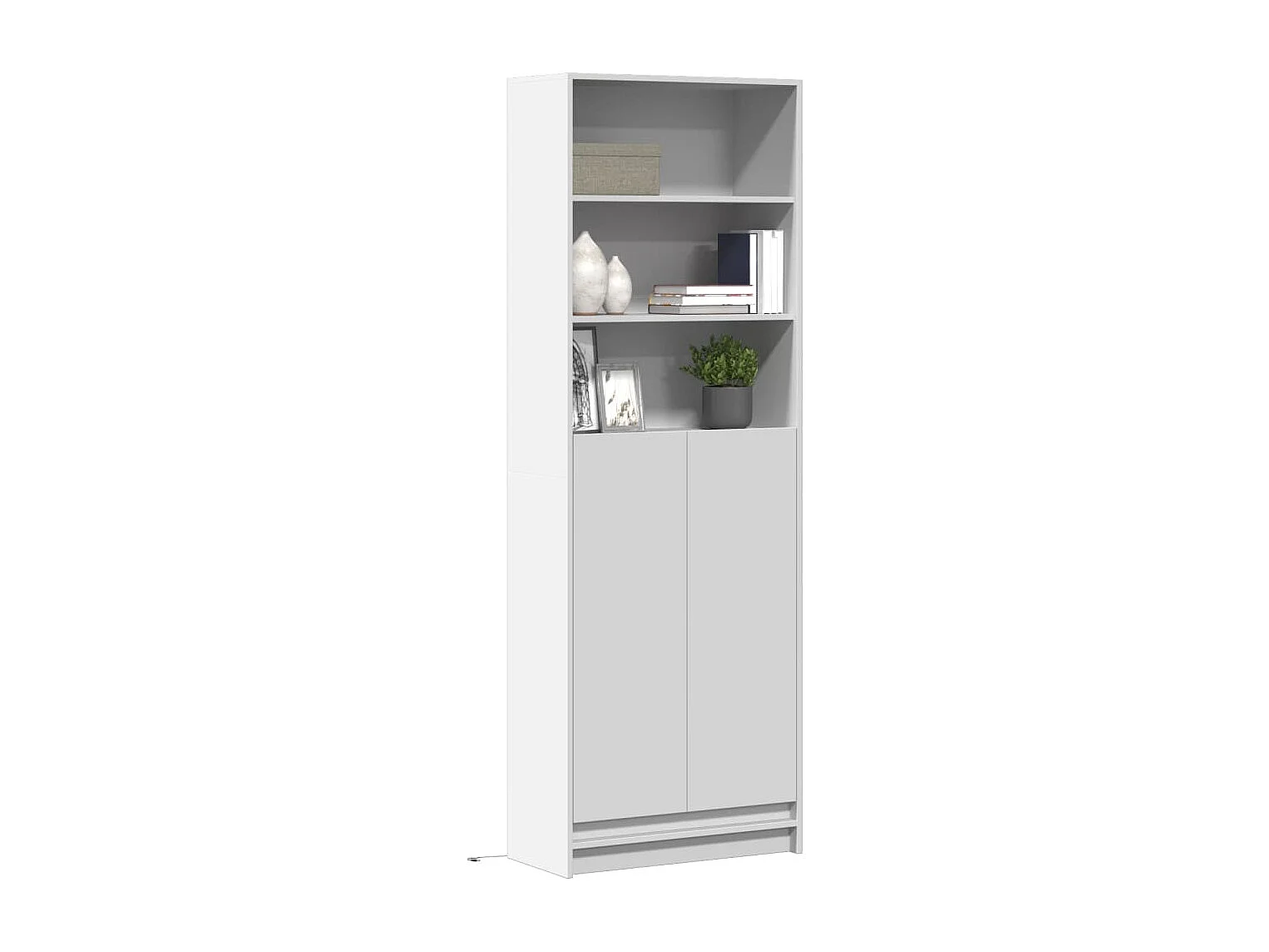 Hoog dressoir met witte LED 69x32,5x200 cm bewerkt hout