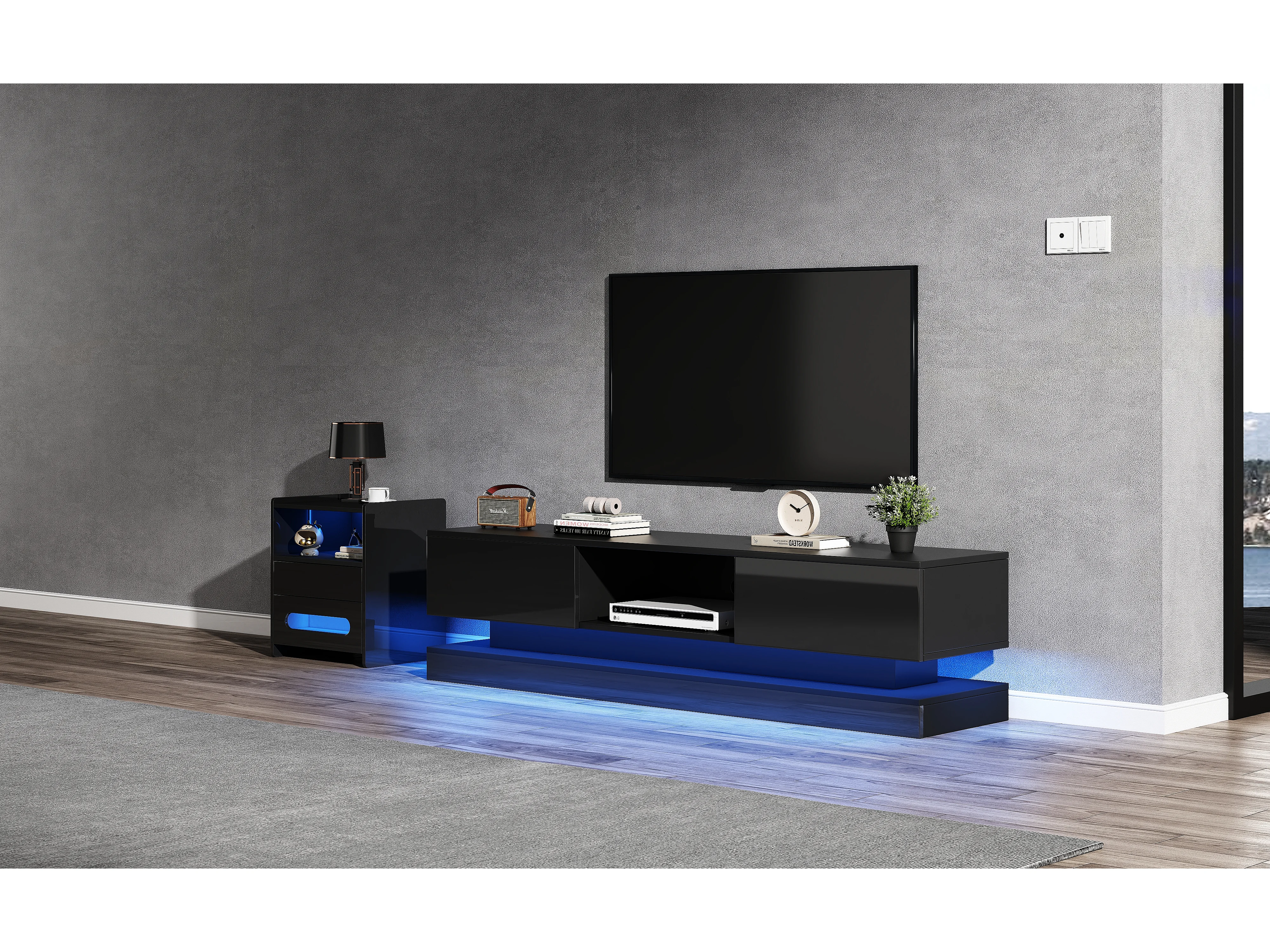 Hoogglans tv-meubel, LED, 160 cm, 2 lades, app-bediening, zwart design (160 x 35 x 40,5 cm)
