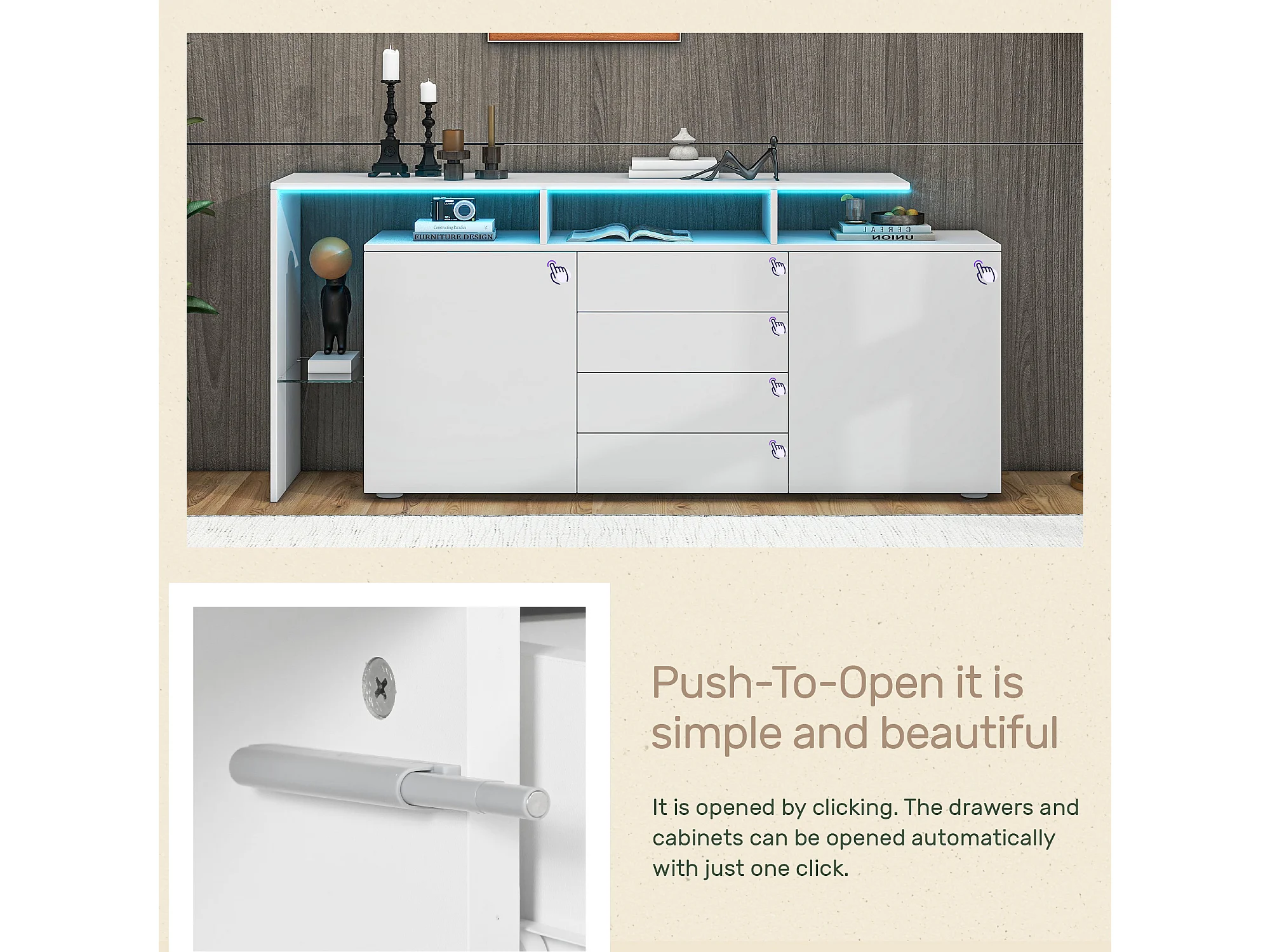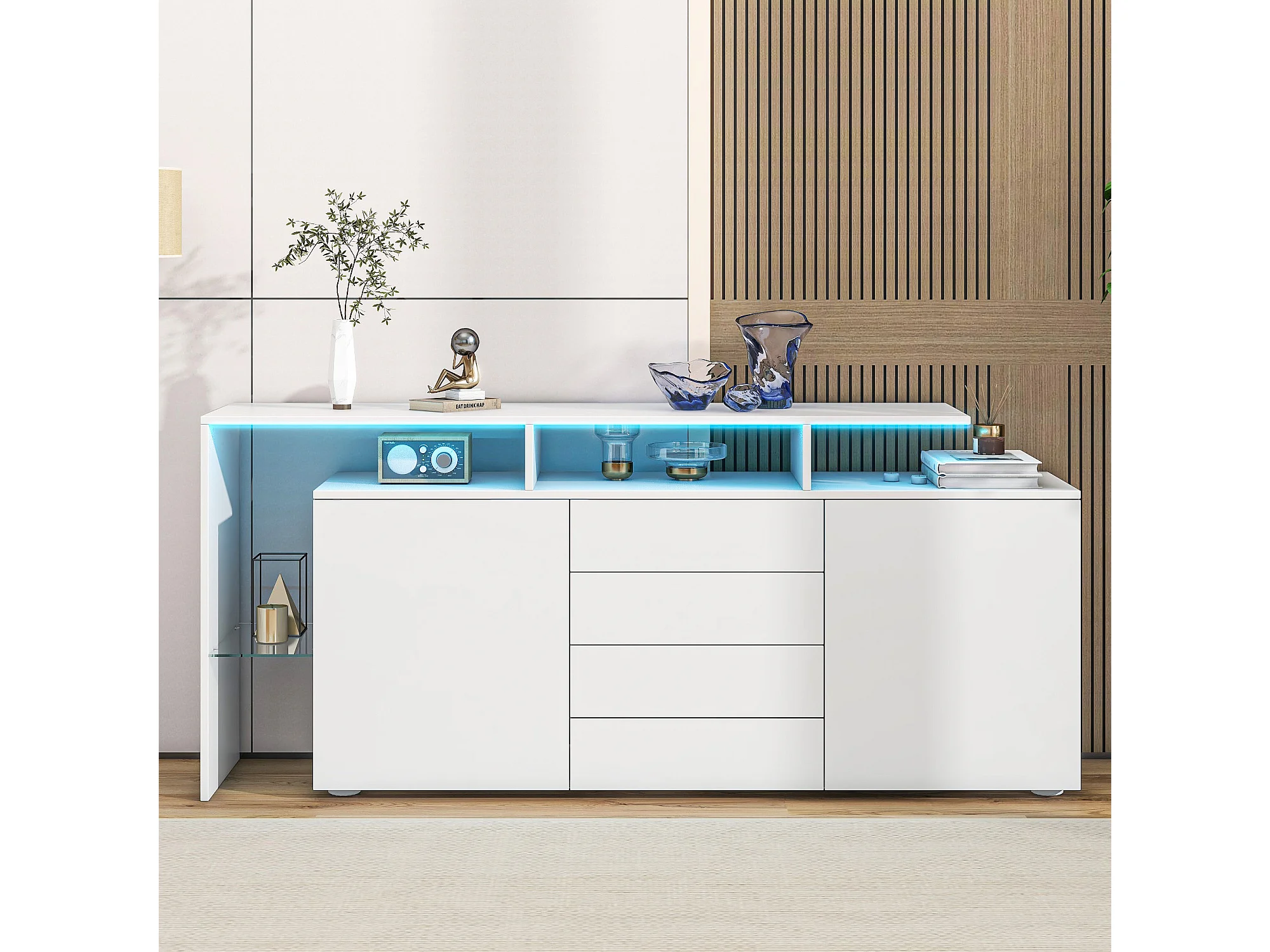 Hoogglans wit dressoir met ledverlichting, multifunctioneel woonkamermeubel, tv en opbergruimte, 160 * 35 * 70 cm