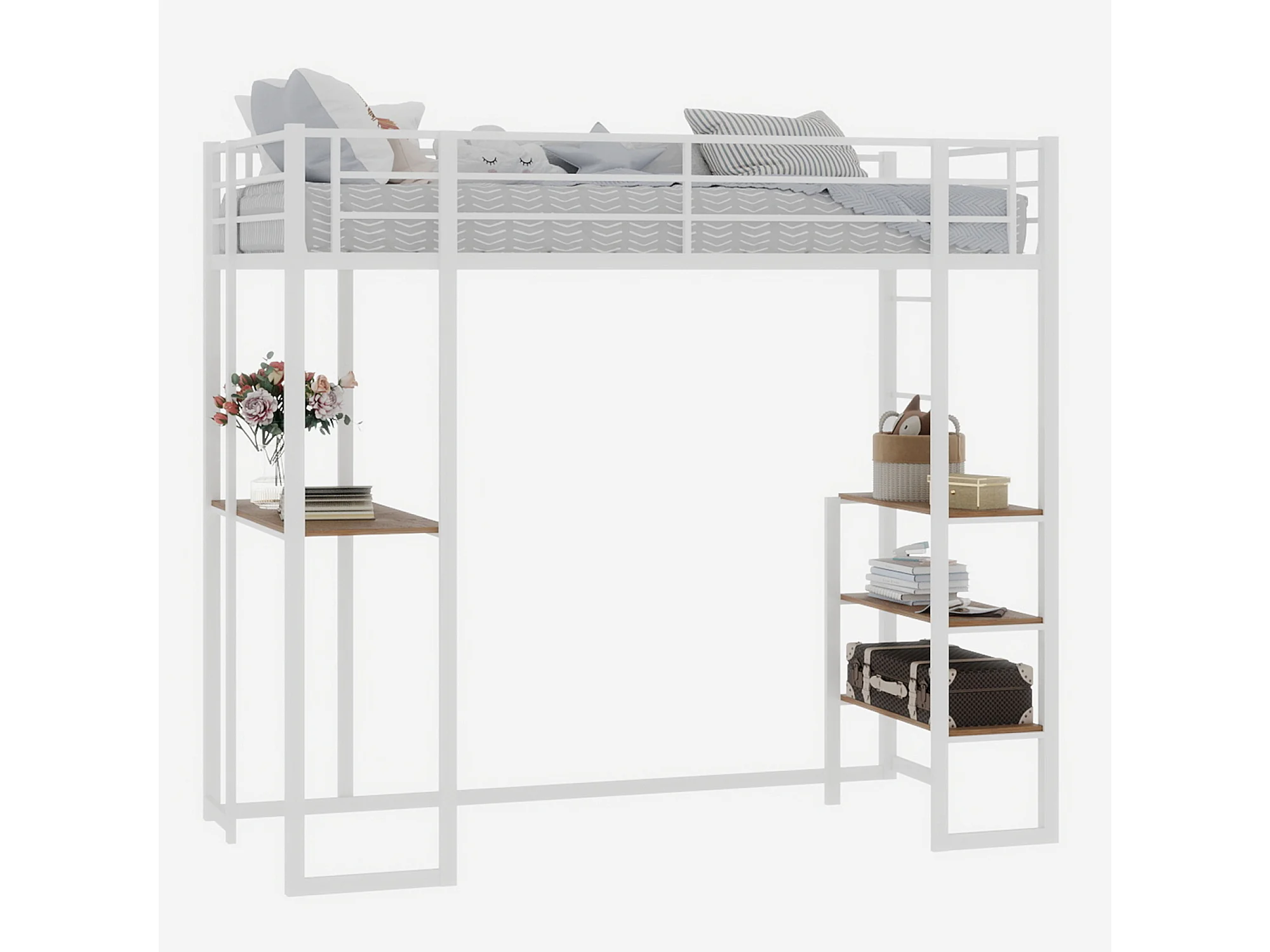Hoogslaper 90x190 cm - Tienerbed met bureau en opbergplanken - wit - matras niet inbegrepen