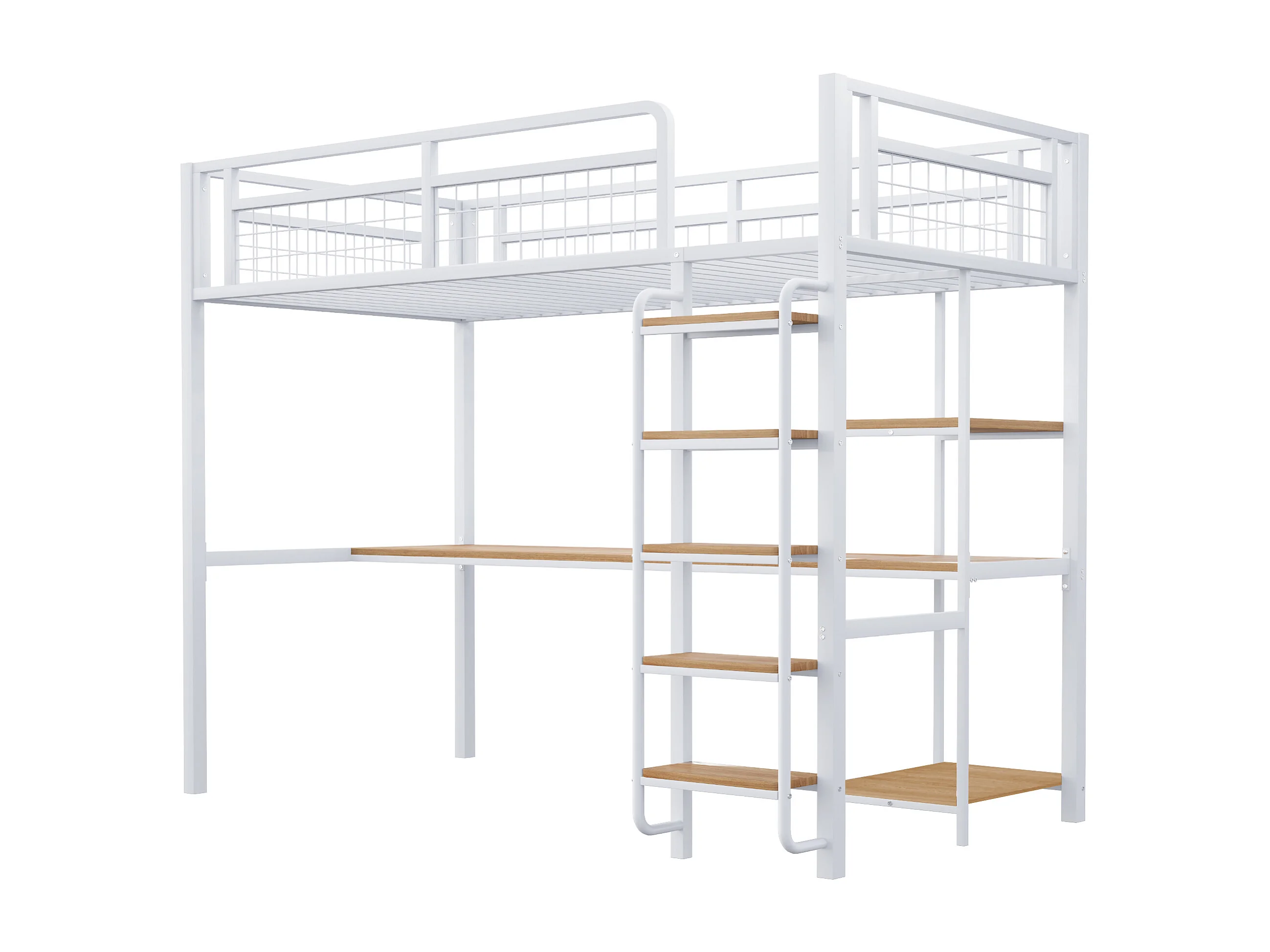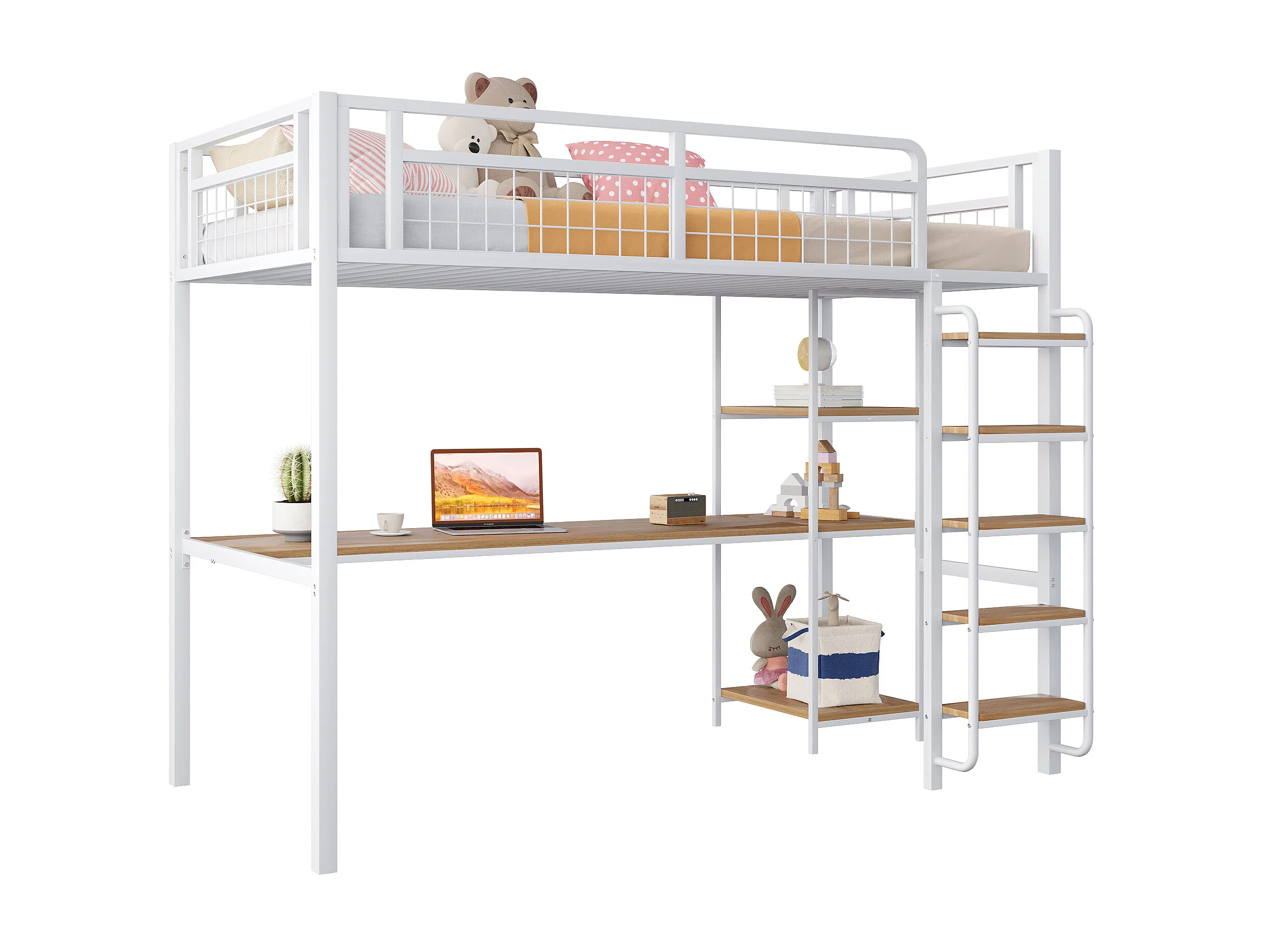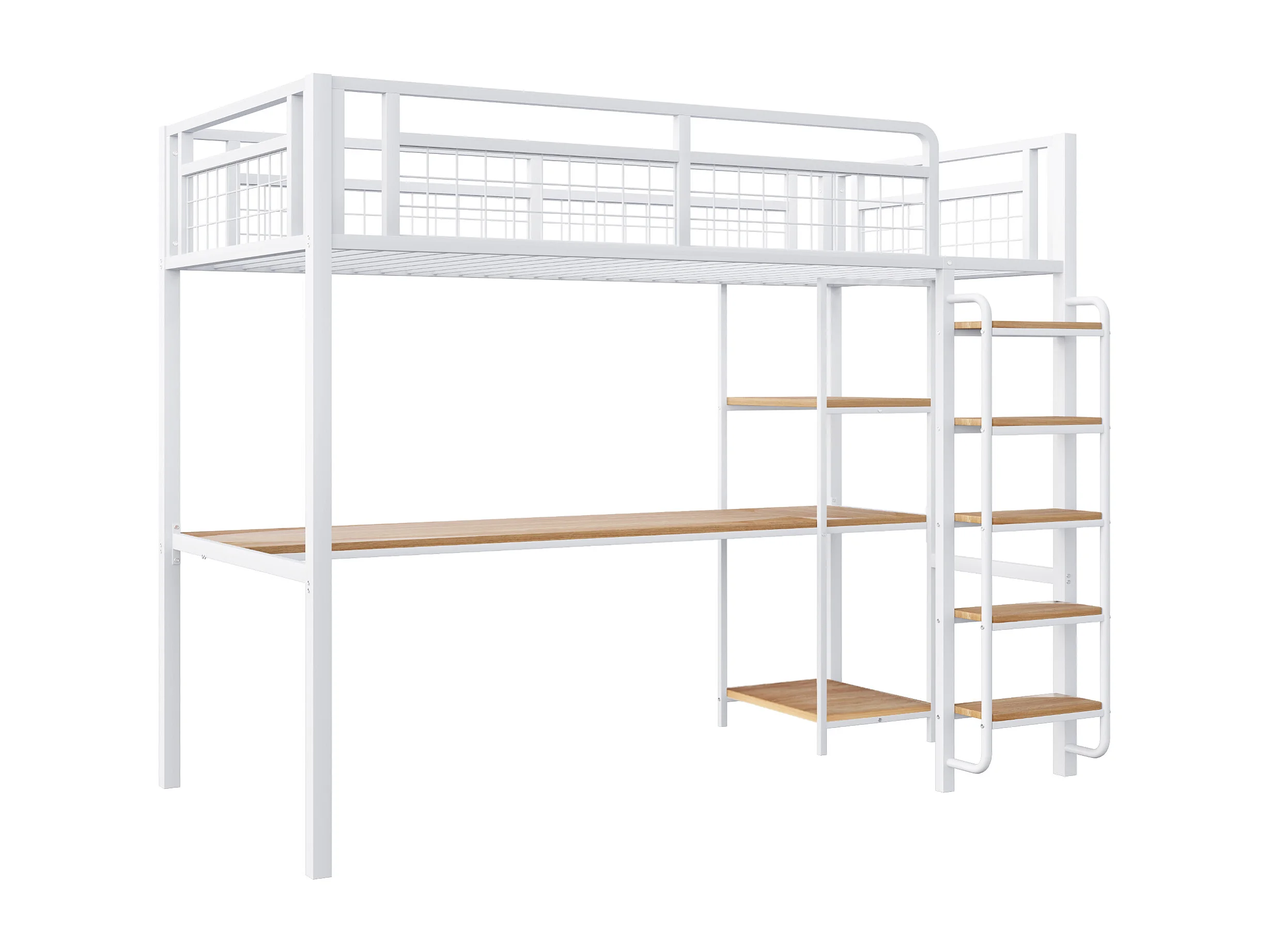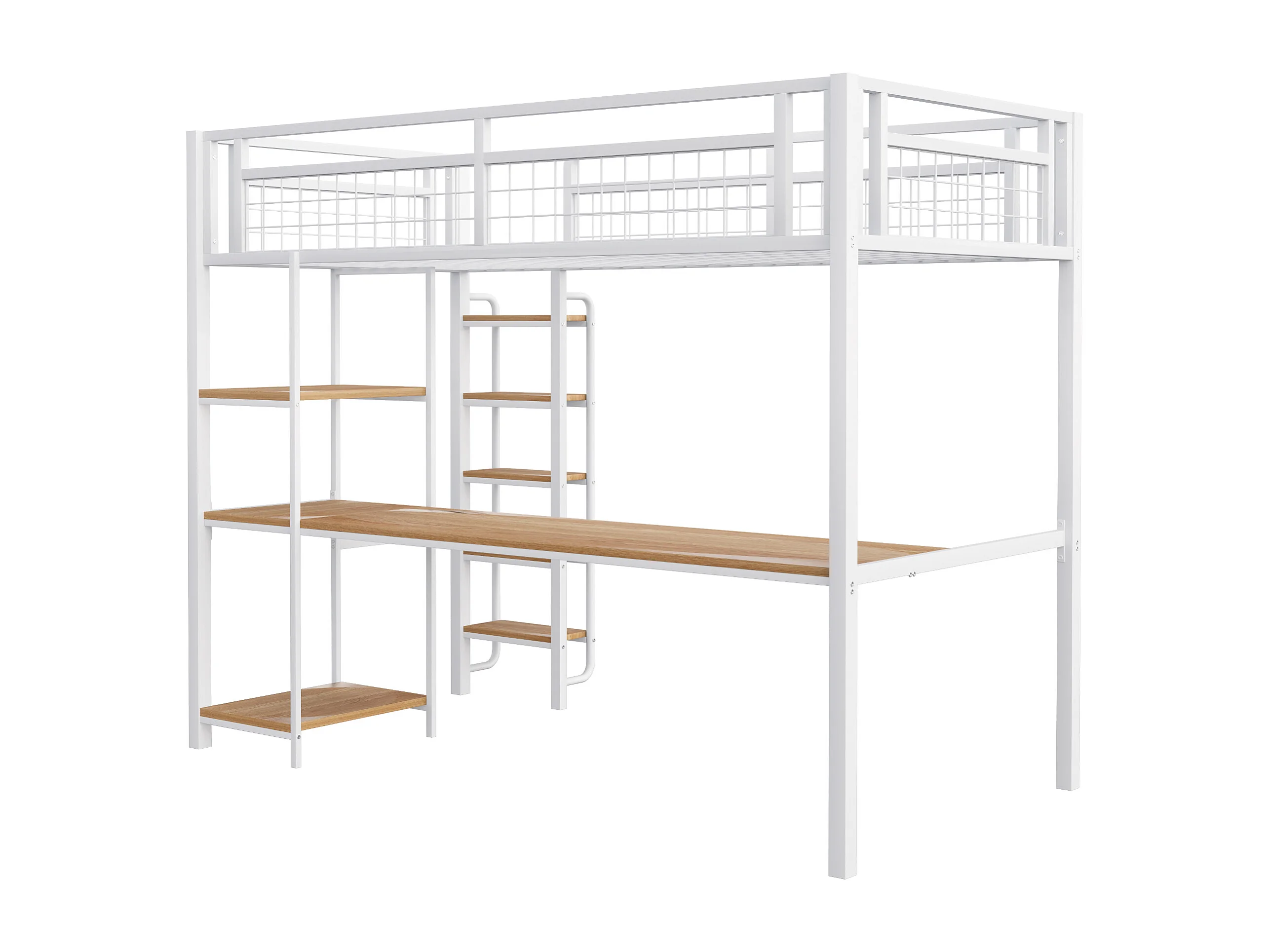 Hoogslaper 90x200 cm met bureau en planken, wit - zonder matras