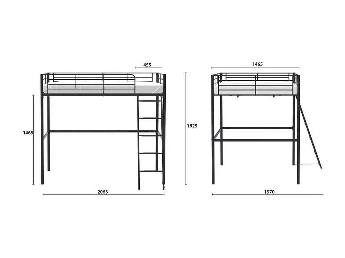 Hoogslaper ELIOT van Zwart Metaal 140 x 200 cm - Lattenbodem Inbegrepen