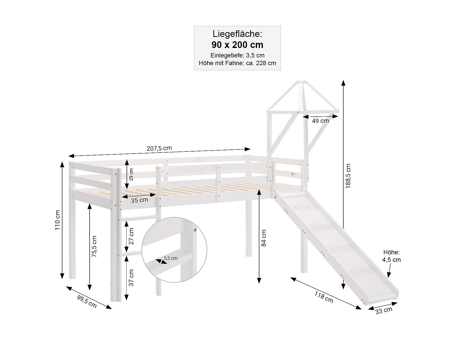 Hoogslaper voor Kinderen 90x200 cm Wit Blauw
