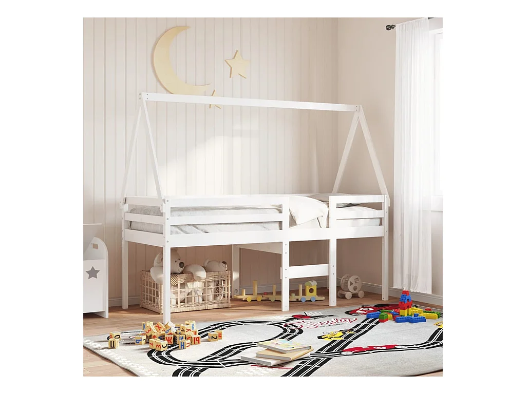 Hoogslaper zonder matras wit 75x190 cm massief grenenhout