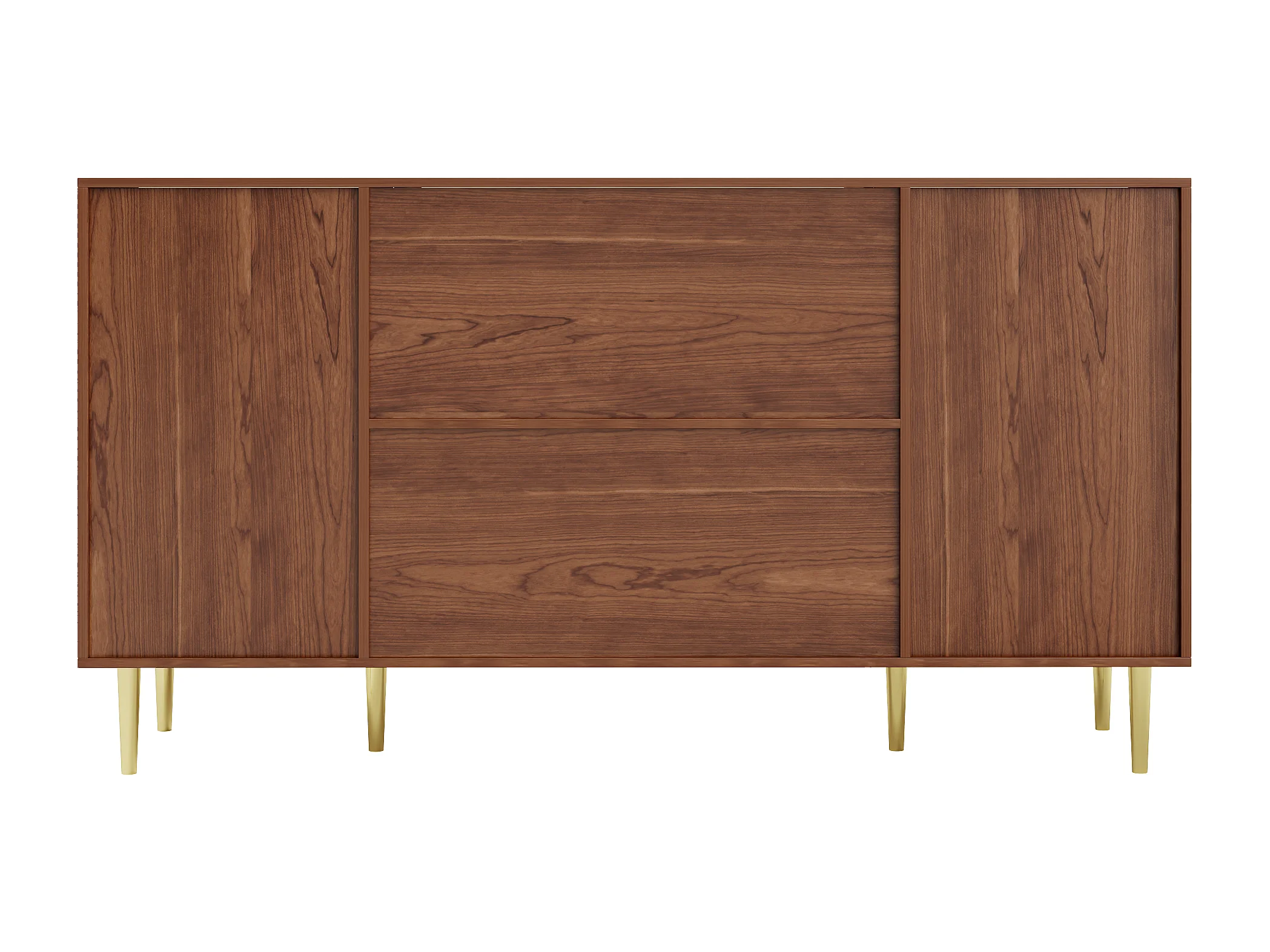Houten dressoir met rotandeuren en lade, 160 x 40 x 90 cm, bruin, voor woonkamer of keuken