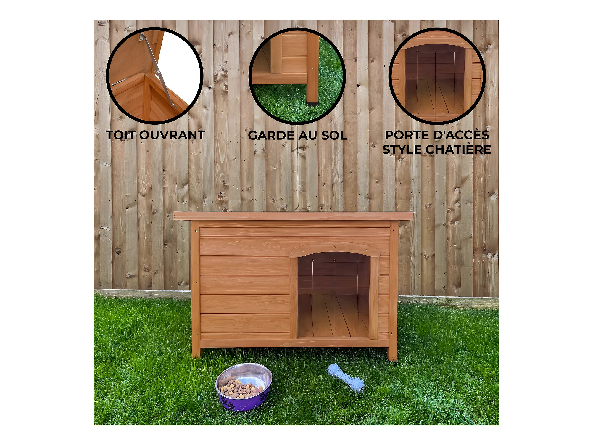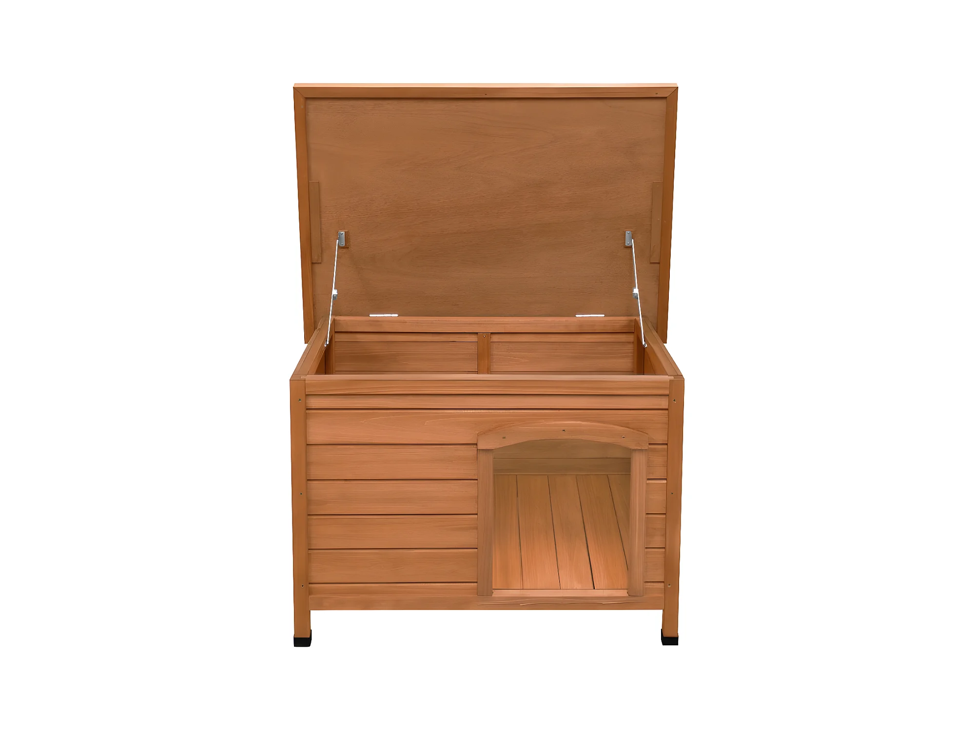 Hondenbench van natuurlijk hout met kussen, veilig ontwerp met twee deuren, voor middelgrote honden (82,5 x 57 x 72 cm)