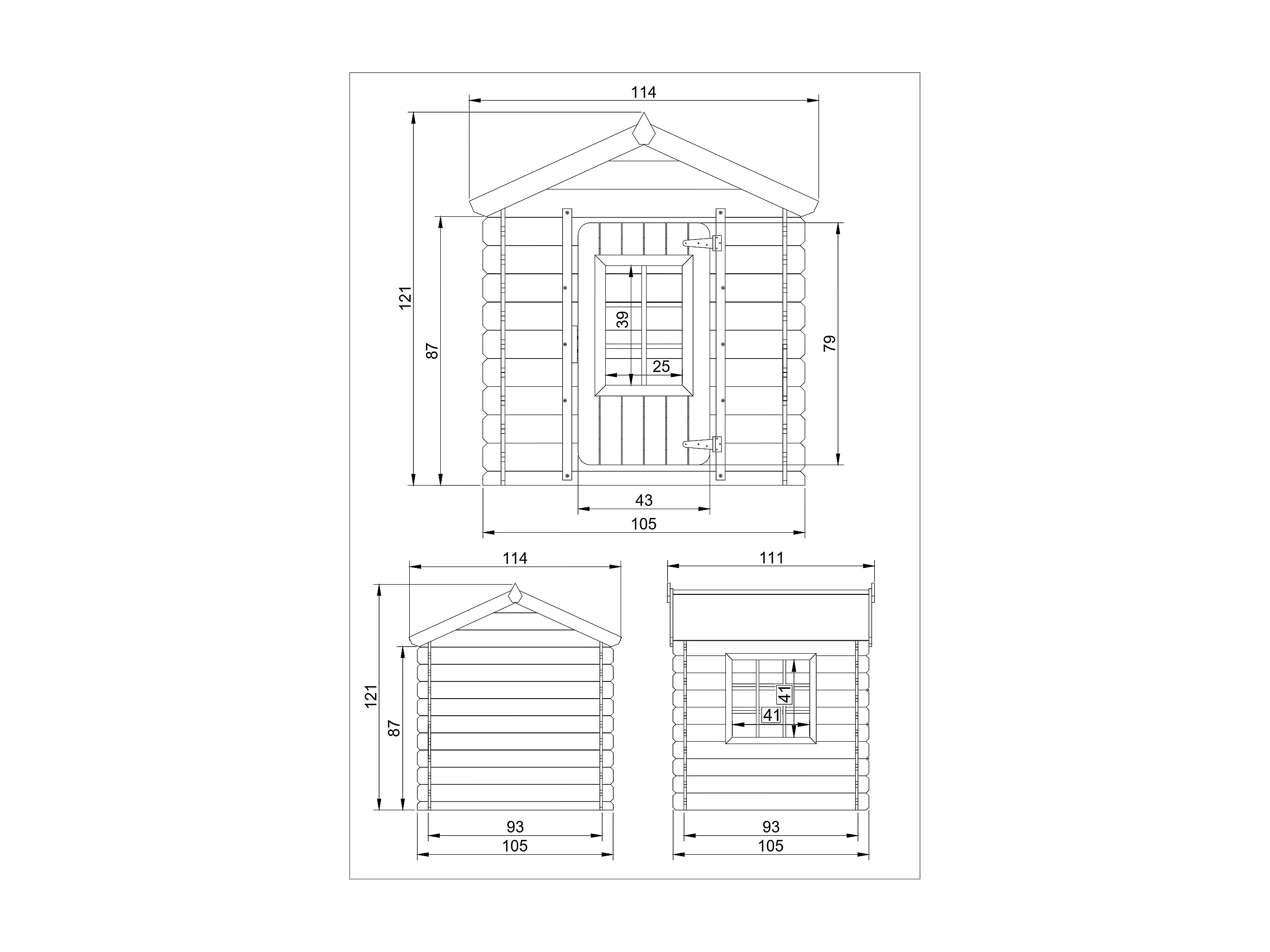 Houten kinderhuis zonder vloer met rood dak - 1m² / 114x111xH121 cm - M570R-1