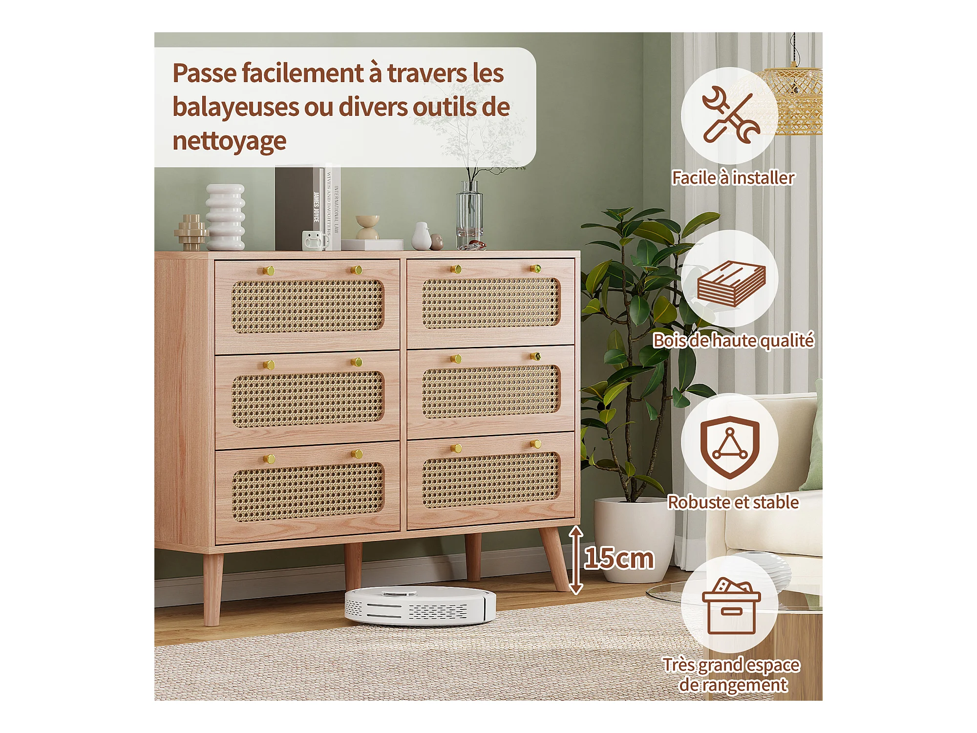 Houten ladekast met 6 rotan lades – Natuurlijk, stabiel en ruim ontwerp