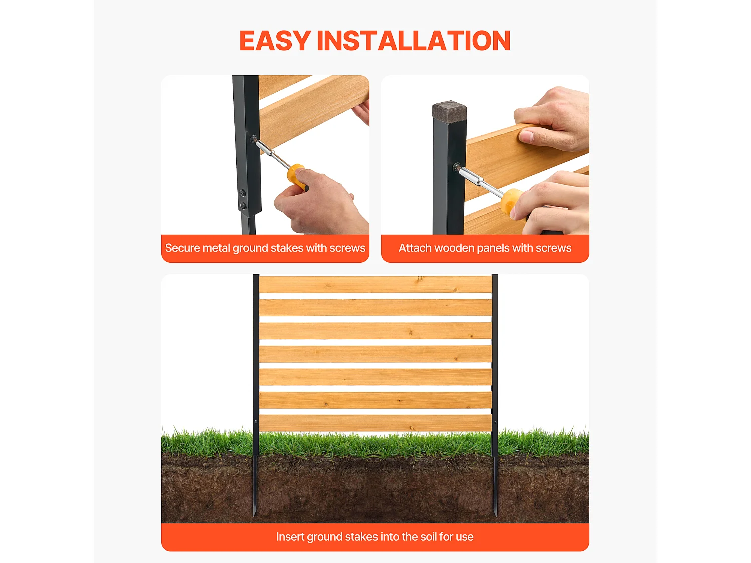 Houten Privacyhek SucceBuy, 1 Paneel, 98 x 155 cm voor Airconditioning, van Massief Natuurlijk Hout en Stevige Metalen Palen